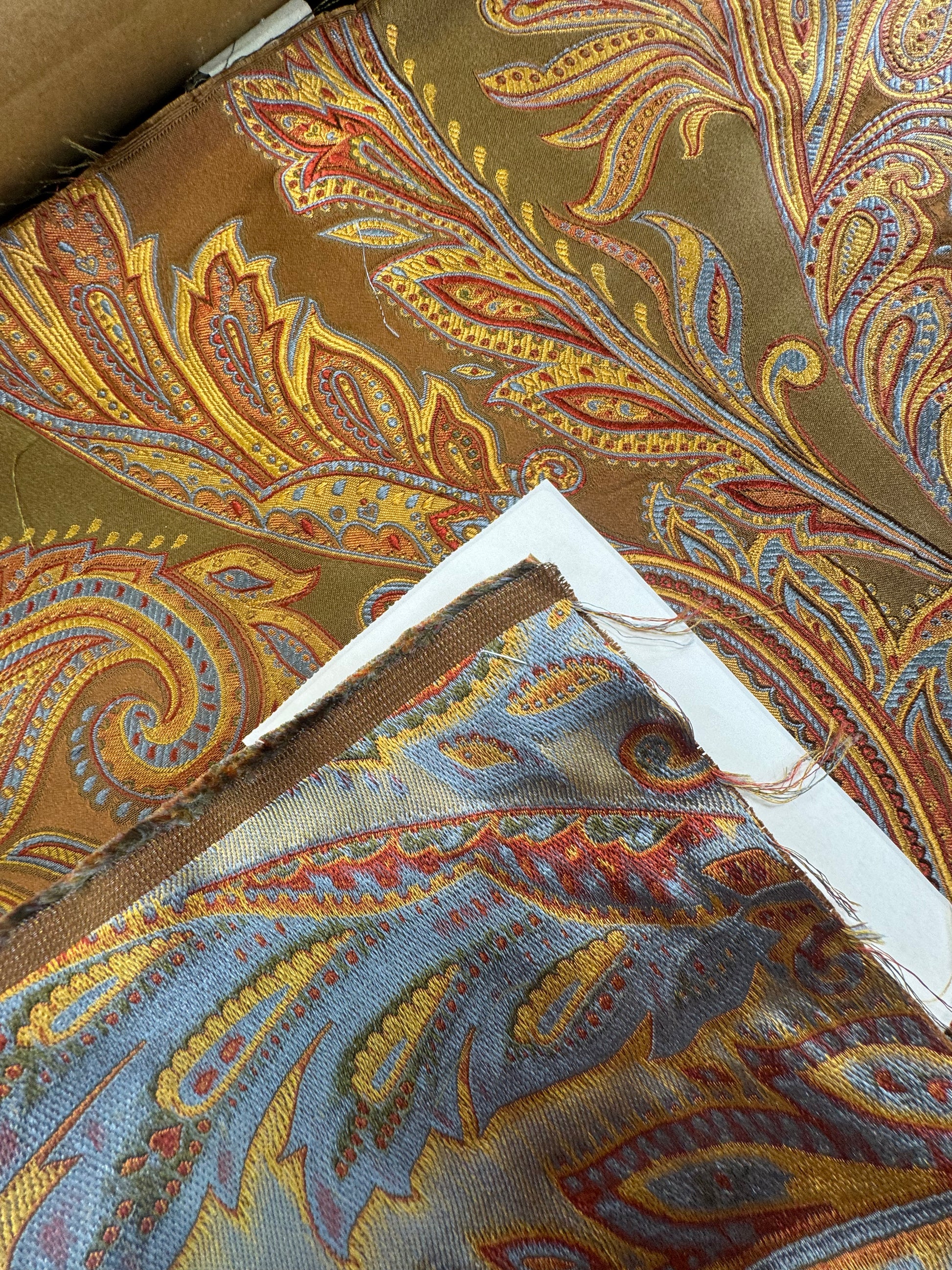 0.47yard Scalamandre Salparino Moss Parrot Paisley 100% Silk Lampas -Green Gold Blue Red -MSRP USD456/y