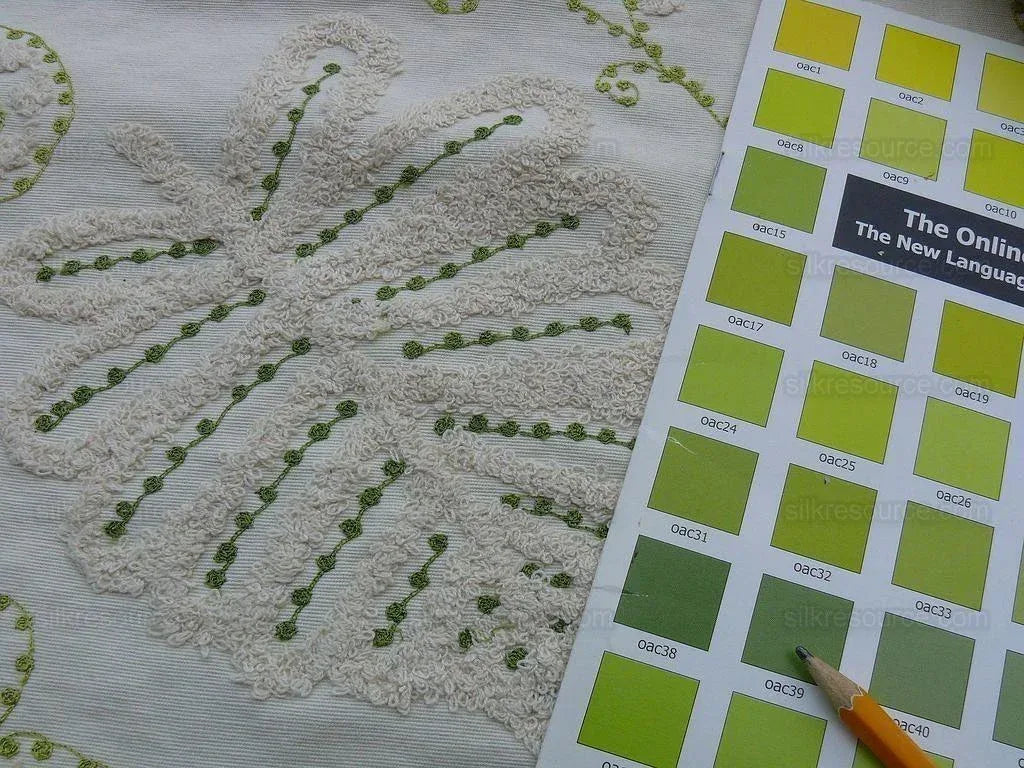 Amazing embroidery! Heavy chenille over cotton duck. Very heavy! About 1.5lbs (680grams)/yard.