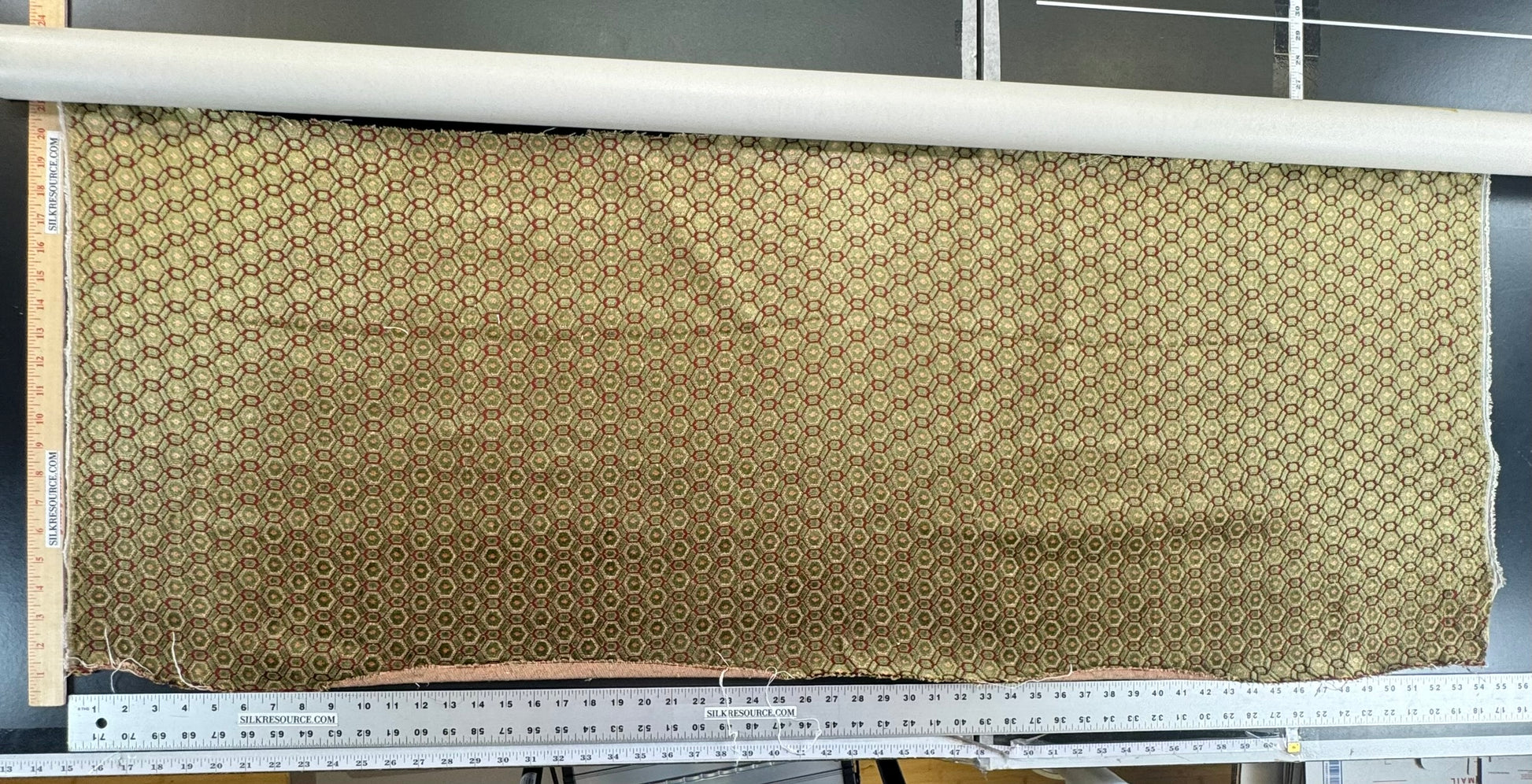 0.5yard Scalamandre Old World Weavers Manet Eucalyptus Green Red Velvet Viscose Small Scales Geometric MSRP USD570/y