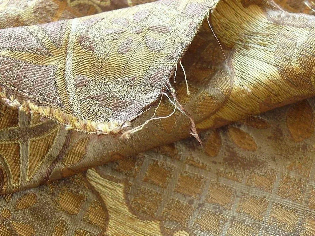 by yard 100% Silk Lampas Aged Metal Large Medallion "godiva" Brown Gold MSRP USD 328/yard