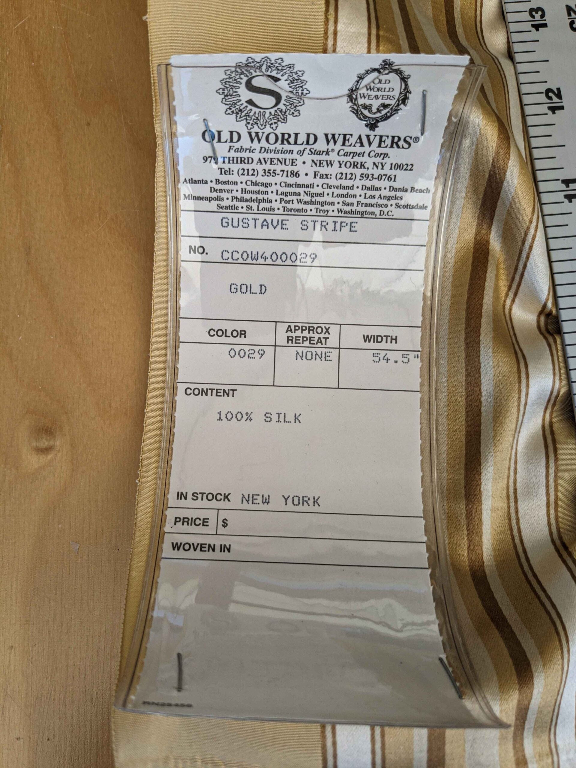 0.8y Scalamandre Gustave Stripe Gold Brown White Old World Weavers 100% Silk Stripe