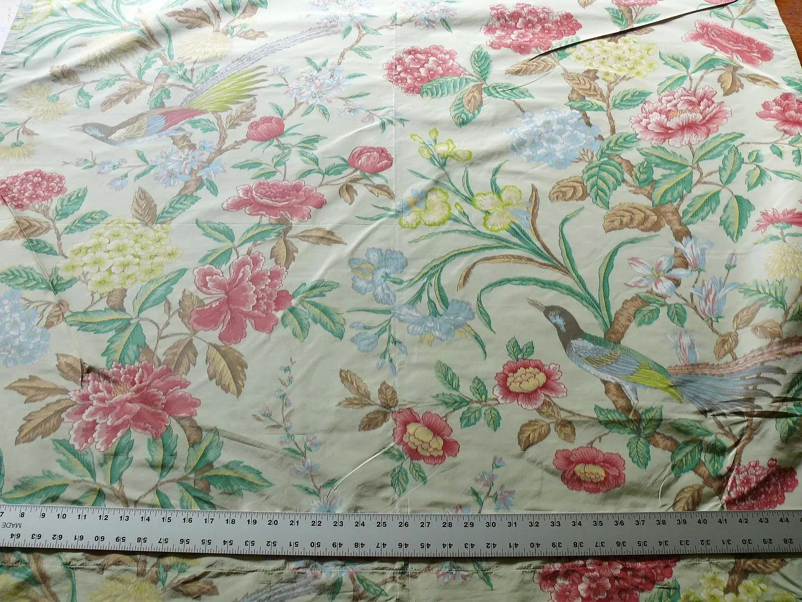 1.1y Scalamandre Oiseau des Exotique 100% Silk Warp Print Bird Light Sage Green