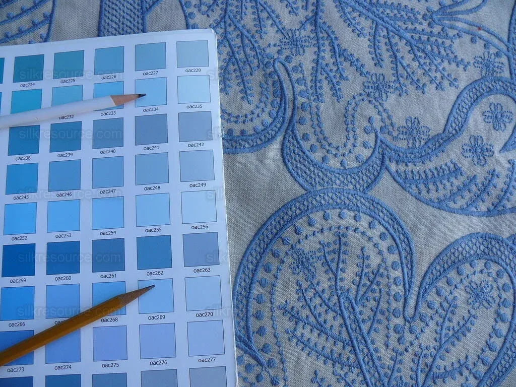 1.38yd Lee Jofa Whitcomb aegean Blue White Embroidery Linen Large Foliage MSRP USD 336Y