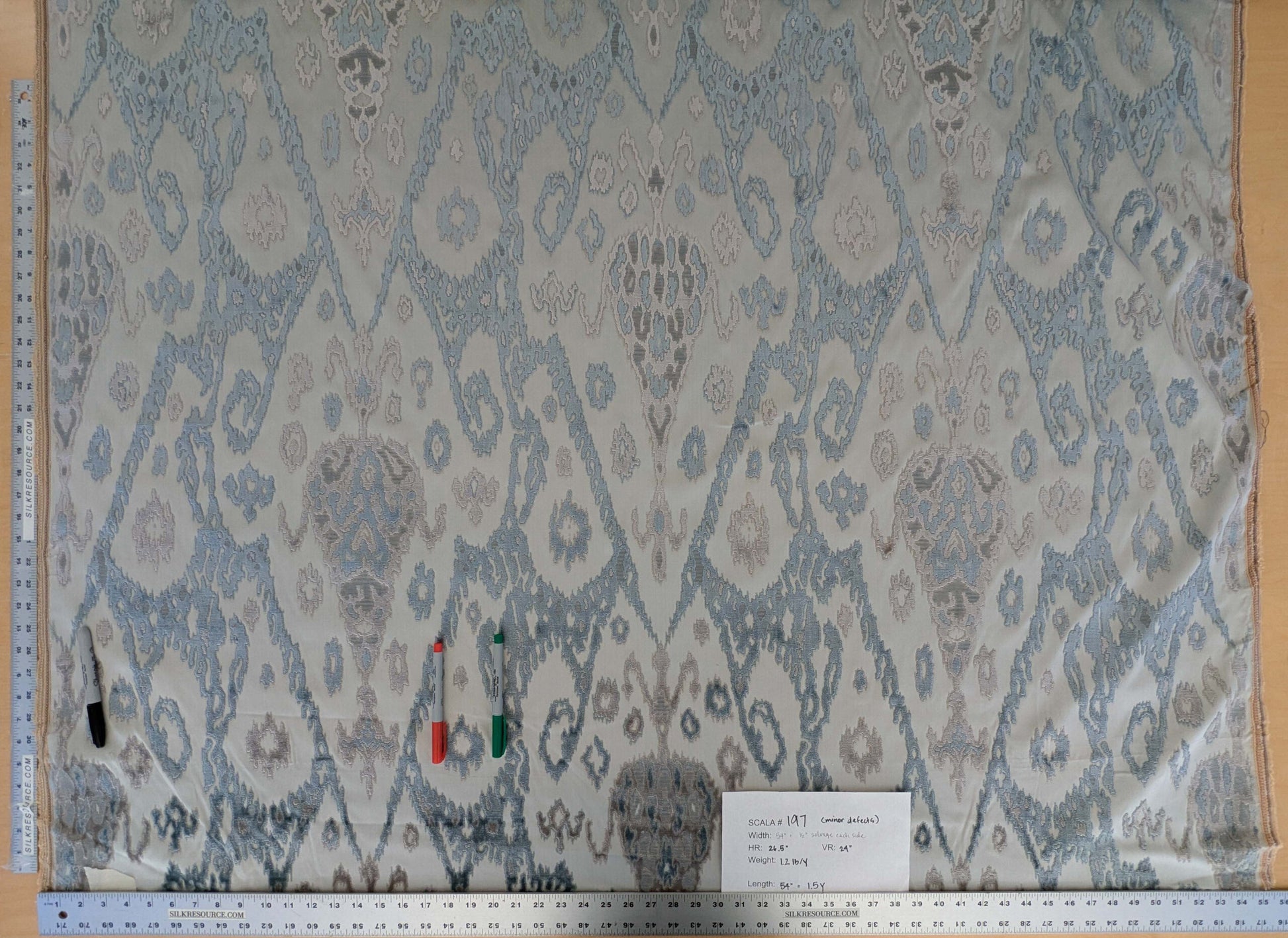 1.35yards Scalamandre TAI LAO Blue Cut Velvet Beige Blue Art Deco MSRP USD 532/Y