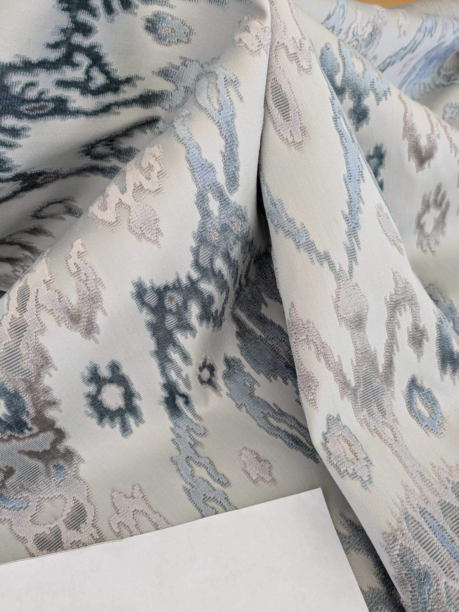 Tai Lao, a luxury in cut velvet, combines exotic patterning with a completely luxurious sensibility. Silky Bemberg viscose pile is woven in a shimmering striation of color against a fine cotton satin ground. Colorations are on-trend for today’s interiors, in subtle neutrals and soft blues . Beautiful and durable, Tai Lao is perfect for a wide range of upholstered chairs, settees, ottomans and decorative cushions.