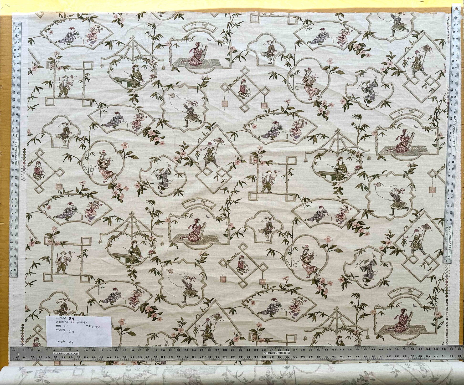 1.9y Scalamandre Old Word Weavers Imperial Court Asian Chinoiserie Toile Figurative Game Sports Music Bamboo Cream White