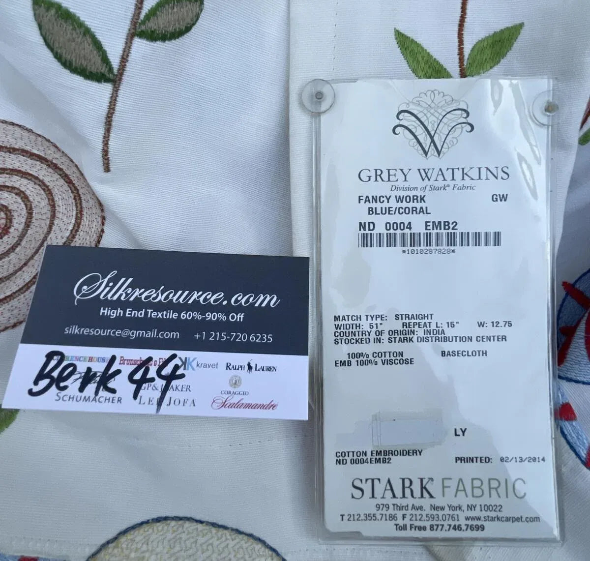 BerkBox44-1 Scalamandre Floral Fancy Blue Coral Embroidery- 1.2 Yards