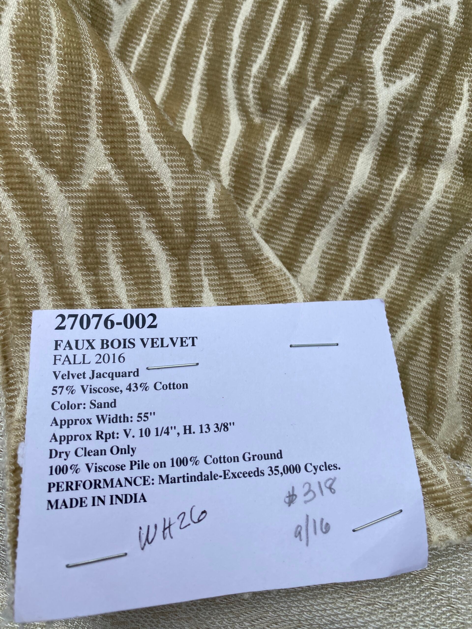 1 Berkbox80 Square Velvet by Scalamandre Faux Bois Velvet Sand Abstract Beige MSRP USD504/y
