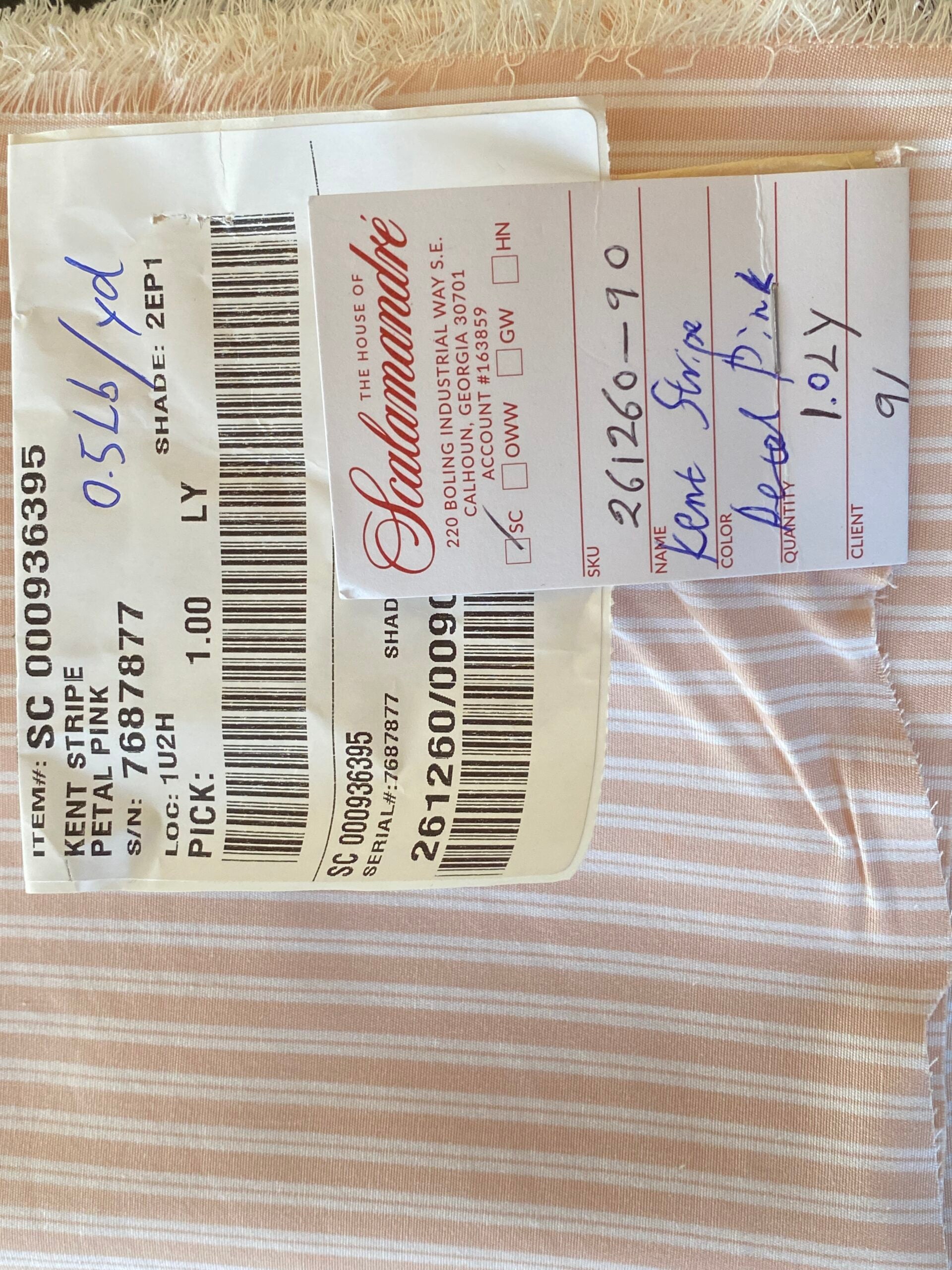 1 yard Scalamandre Kent Stripe Petal Pink White Cotton