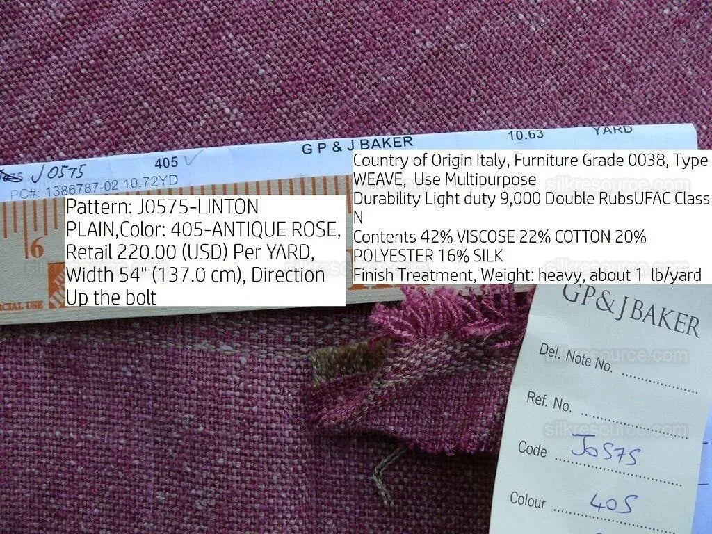 Fiber, repeat, width, weight, country of origin, retail price/yard:
