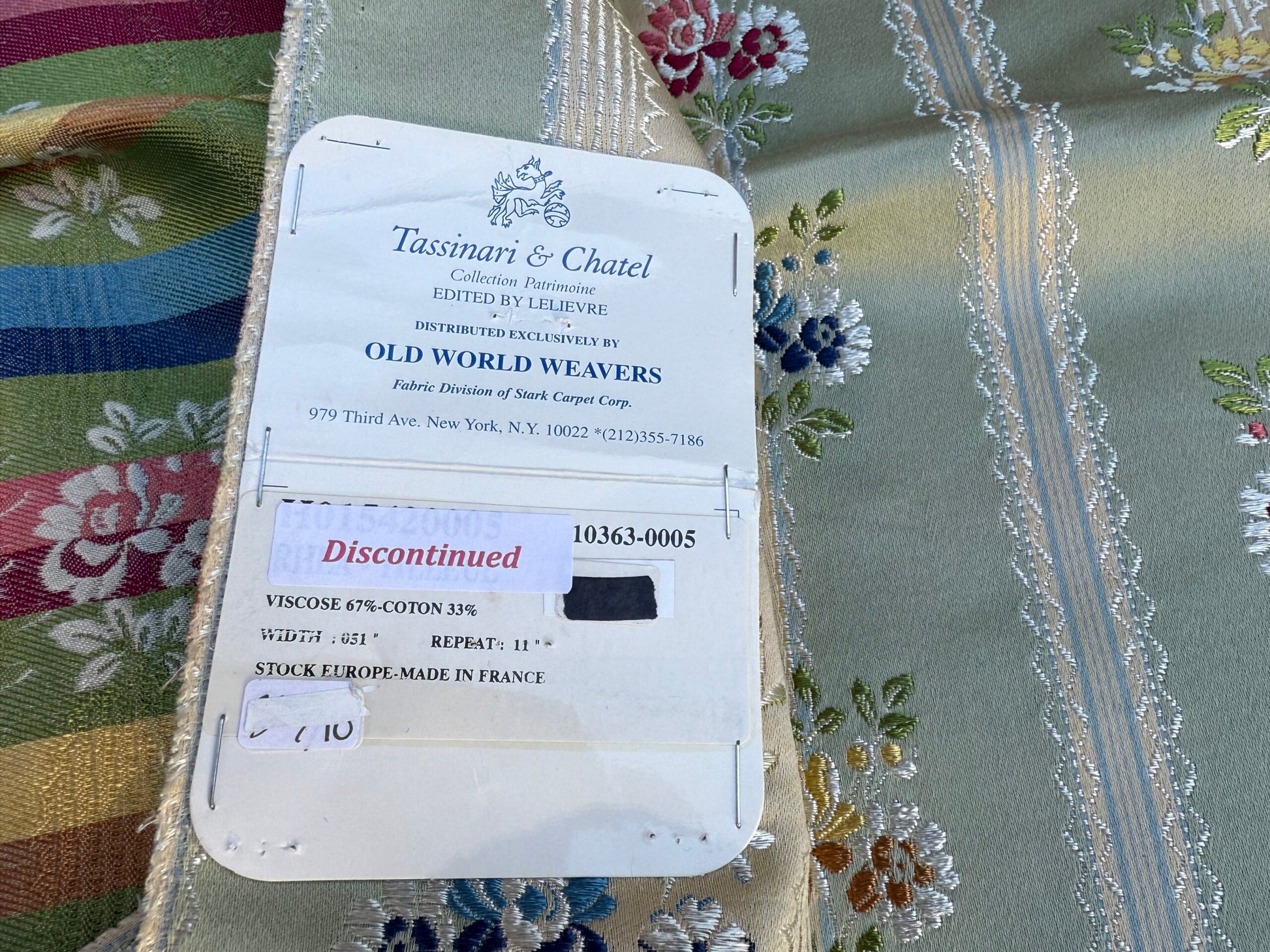 Fiber, repeat, width, weight, country of origin, WHOLESALE price/yard: