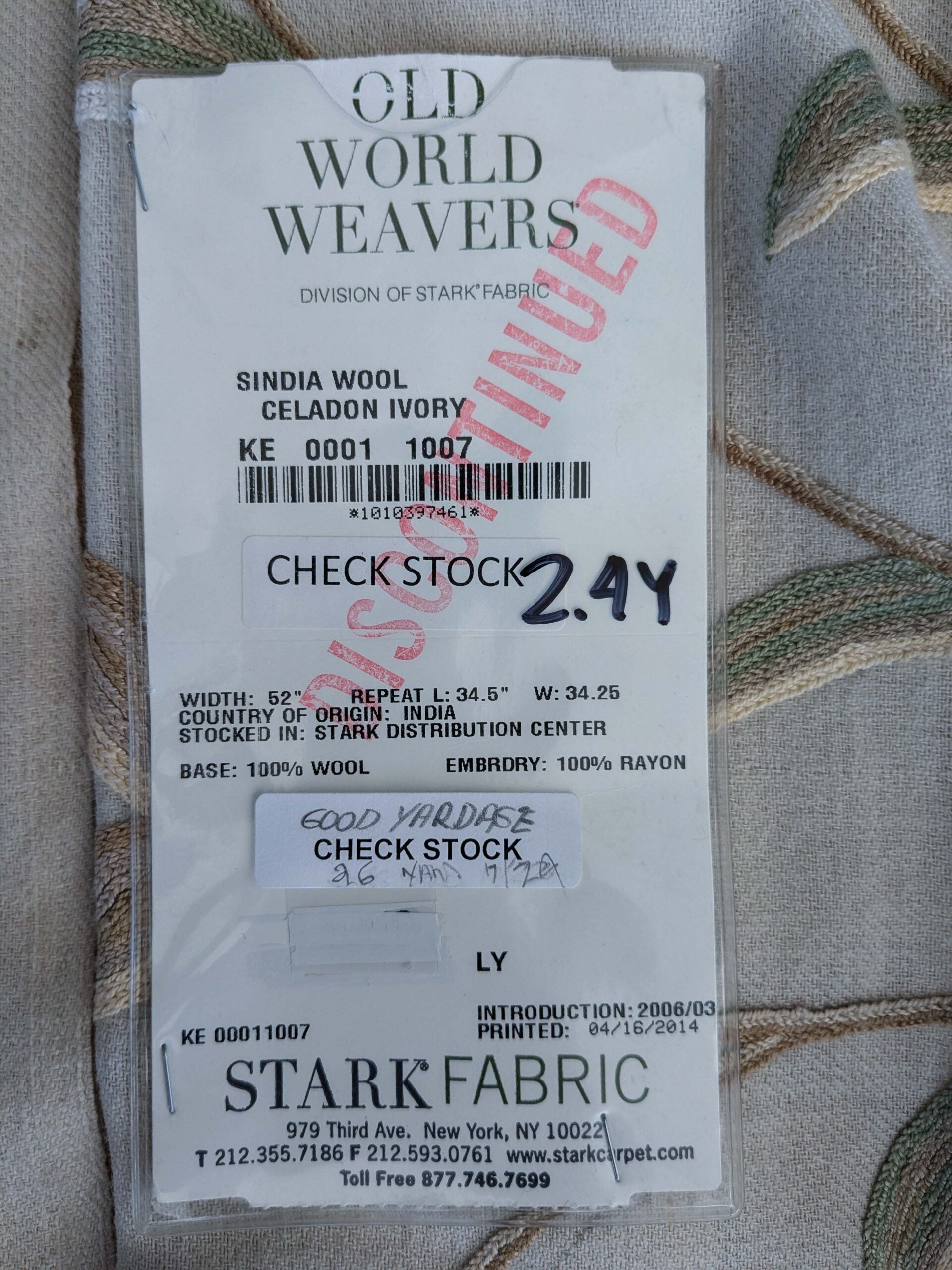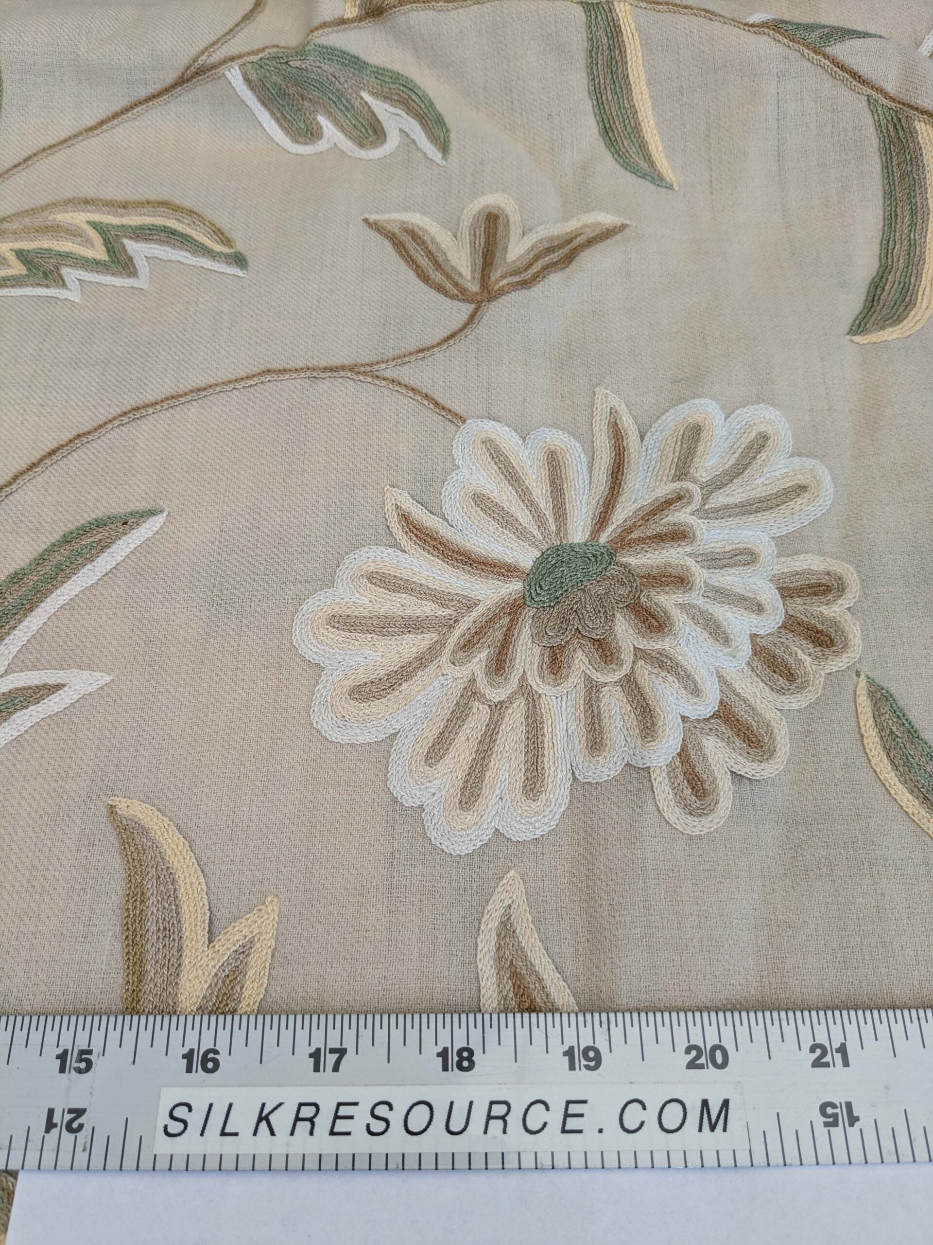 10 EV51 2.4y x 52"w Length Scalamandre Embroidery Cindia Wool Celadon Ivory Floral Botanical