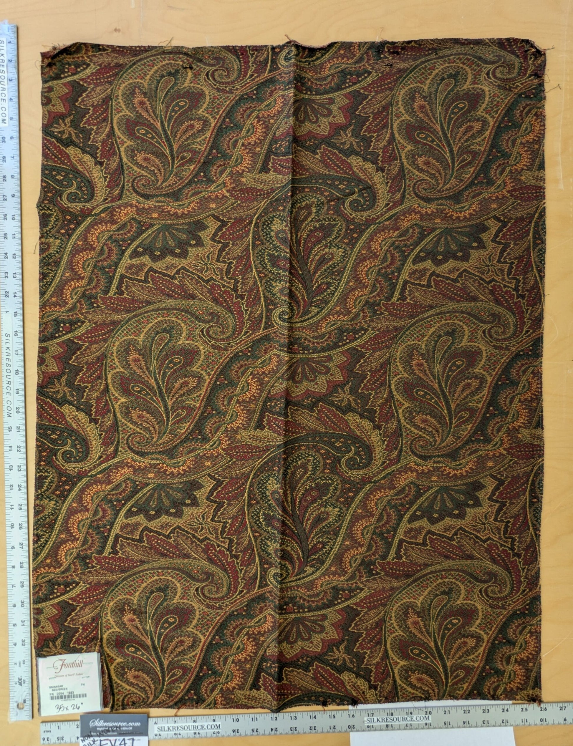 100 EV47 Square Scalamandre Fonthill Srinagar Red Green Red Gold Cotton Paisley Novelty 35"x26"