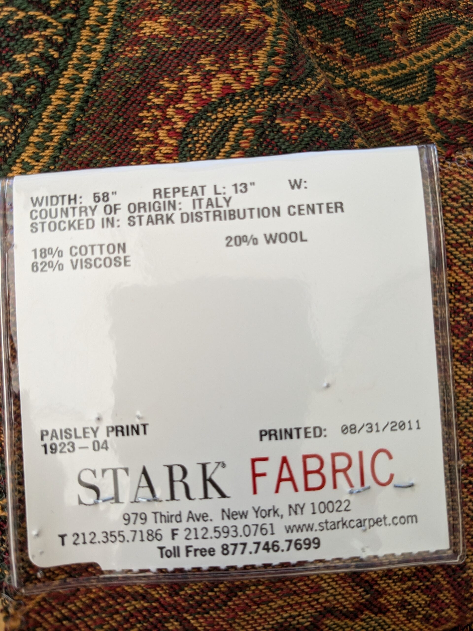 Fiber, repeat, width, weight, country of origin, WHOLESALE price/yard: