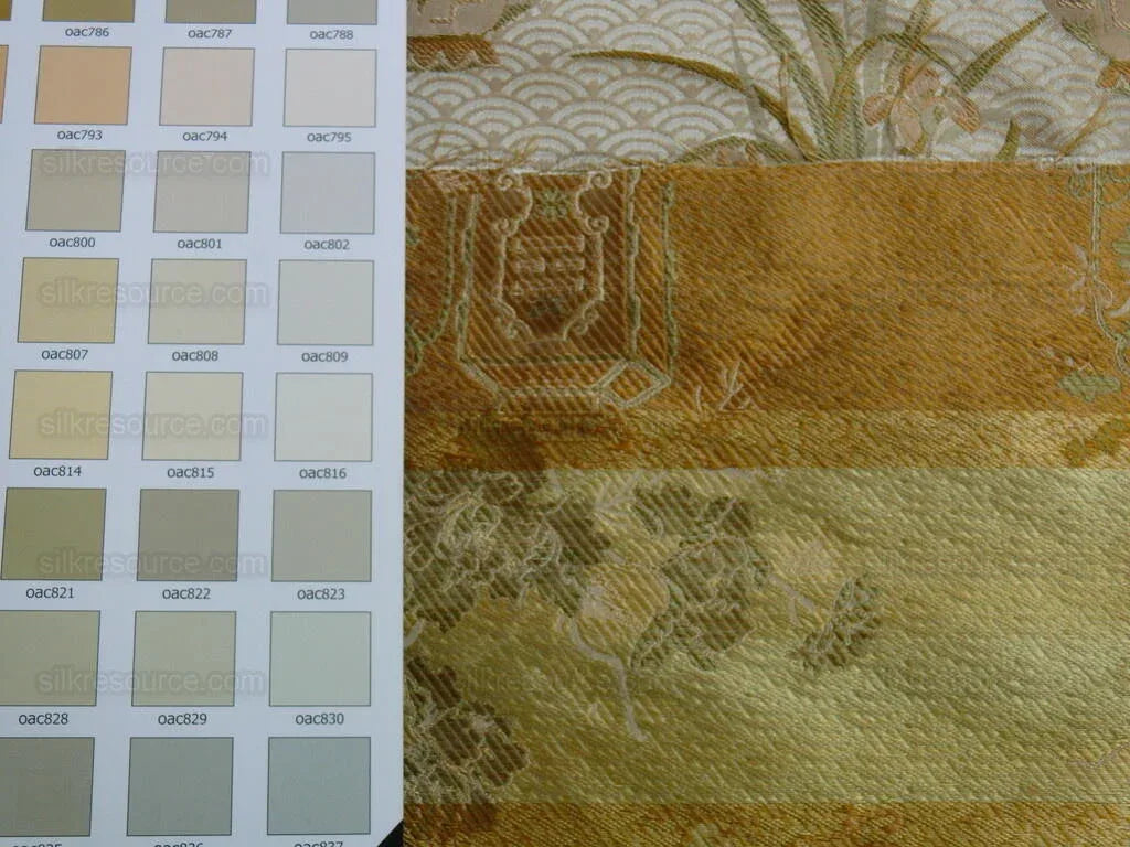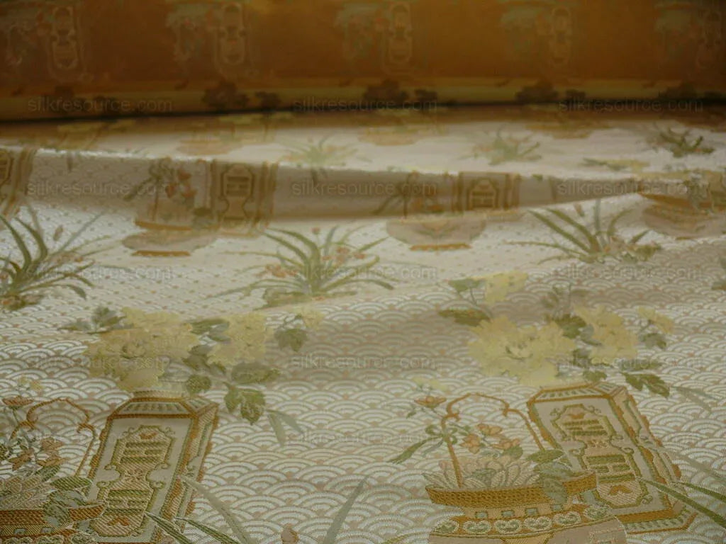 High End 100% silk Jacquard Lampas Chinoisery Gold Peony Basket Vase Creamy "goldspun"