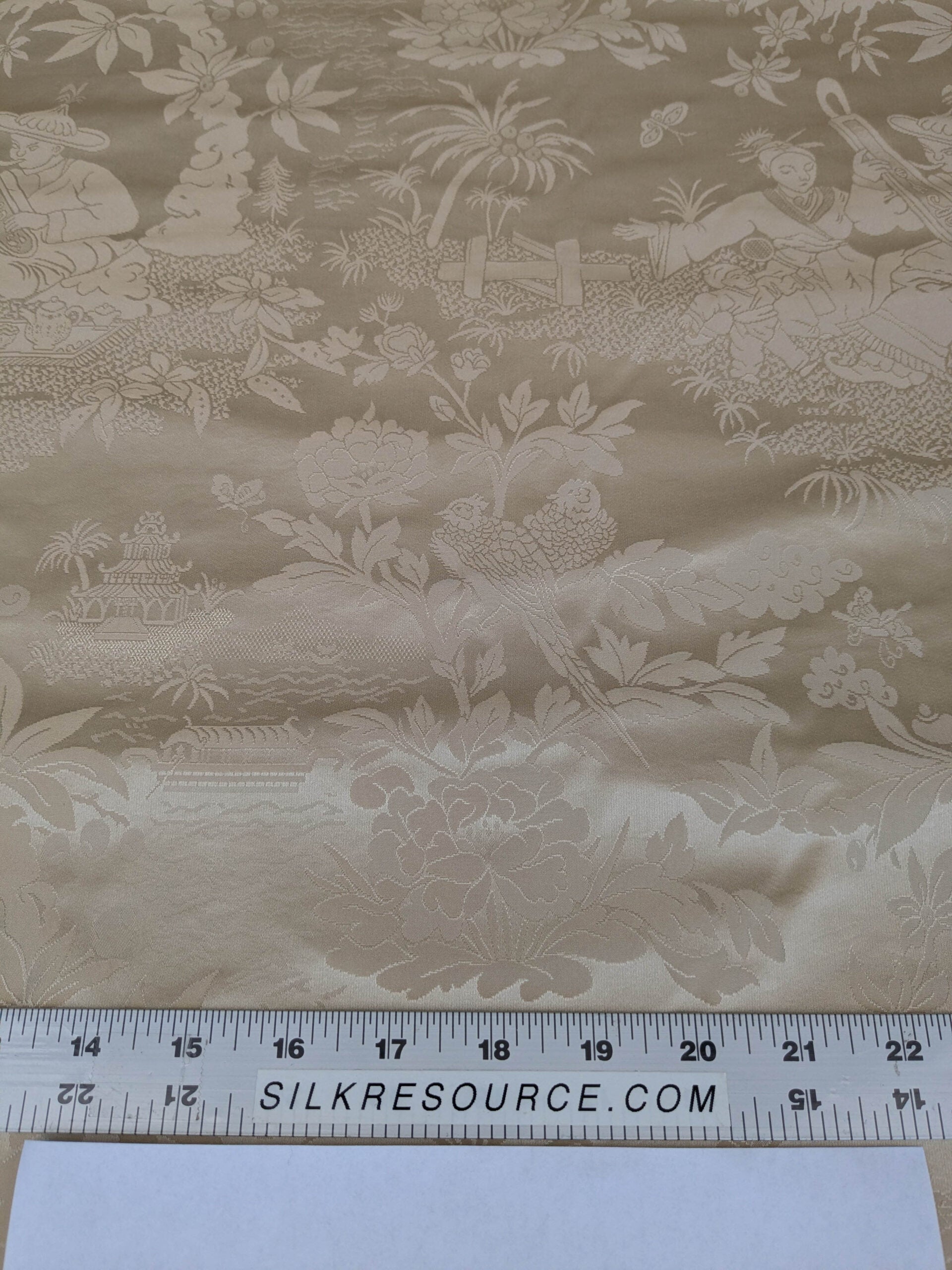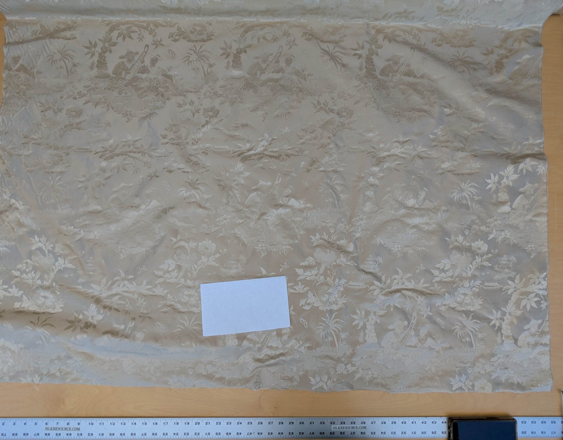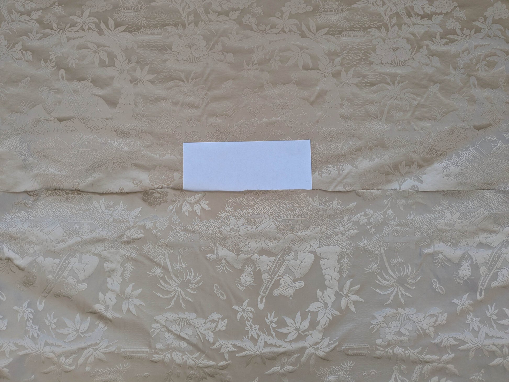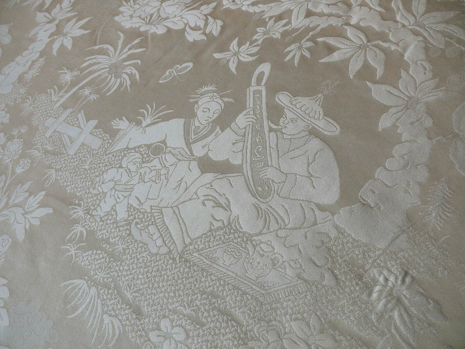 100% Silk Damask Chinoiserie Toile Music Garden "nimbus" Cream White