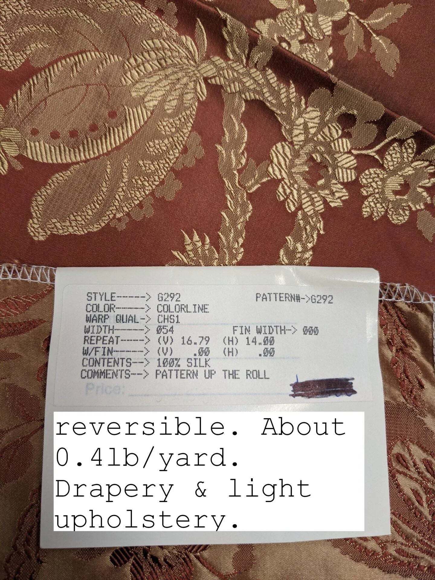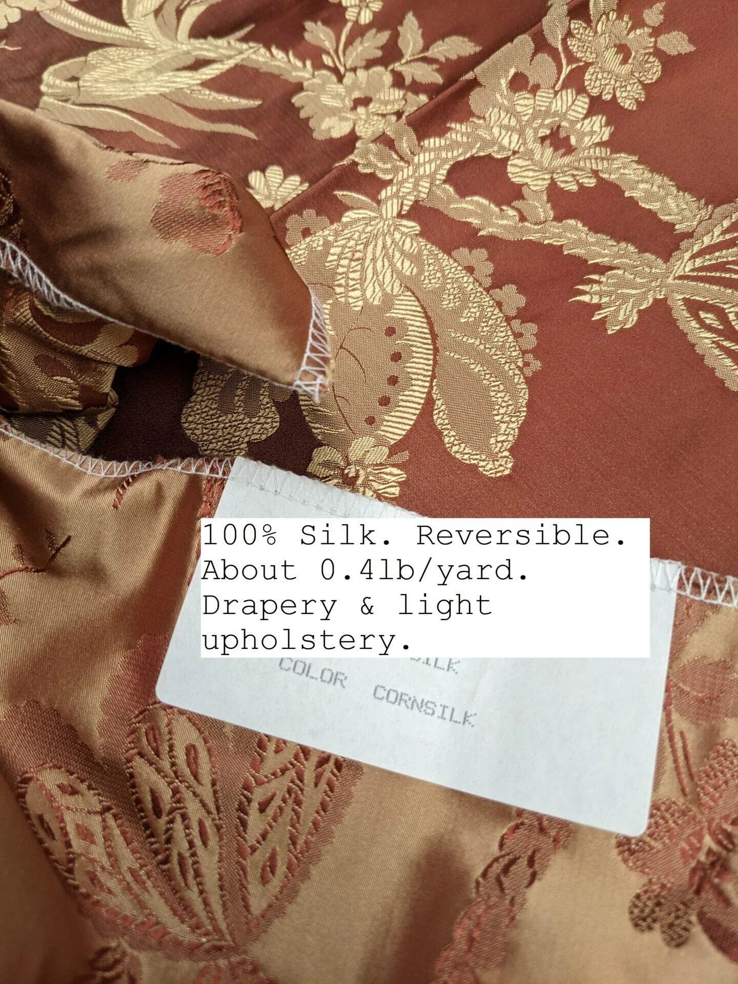 100% Silk Damask Lace Curvy Botanical Flower Vines Art Neuveu Cornsilk Red Gold bty