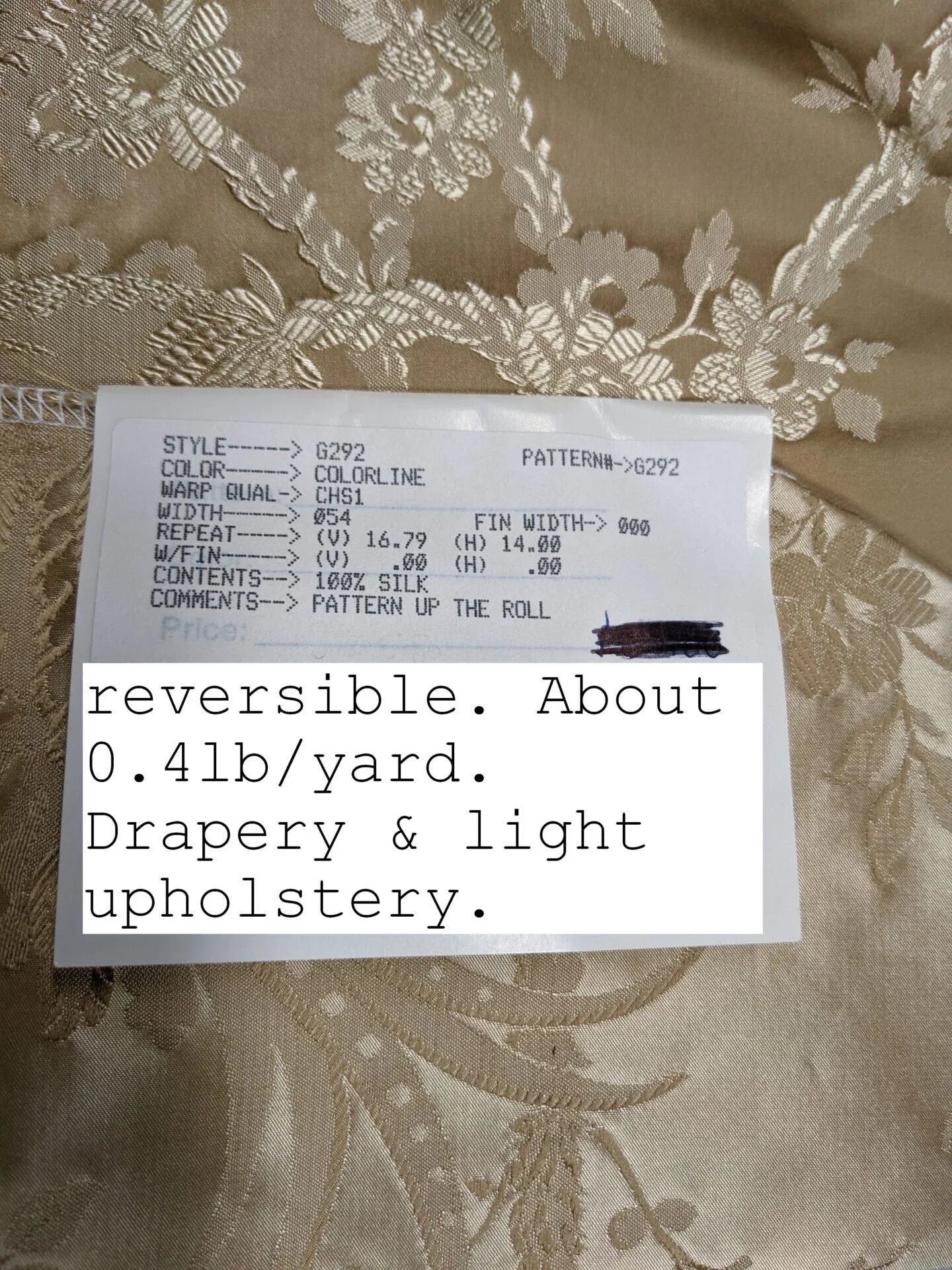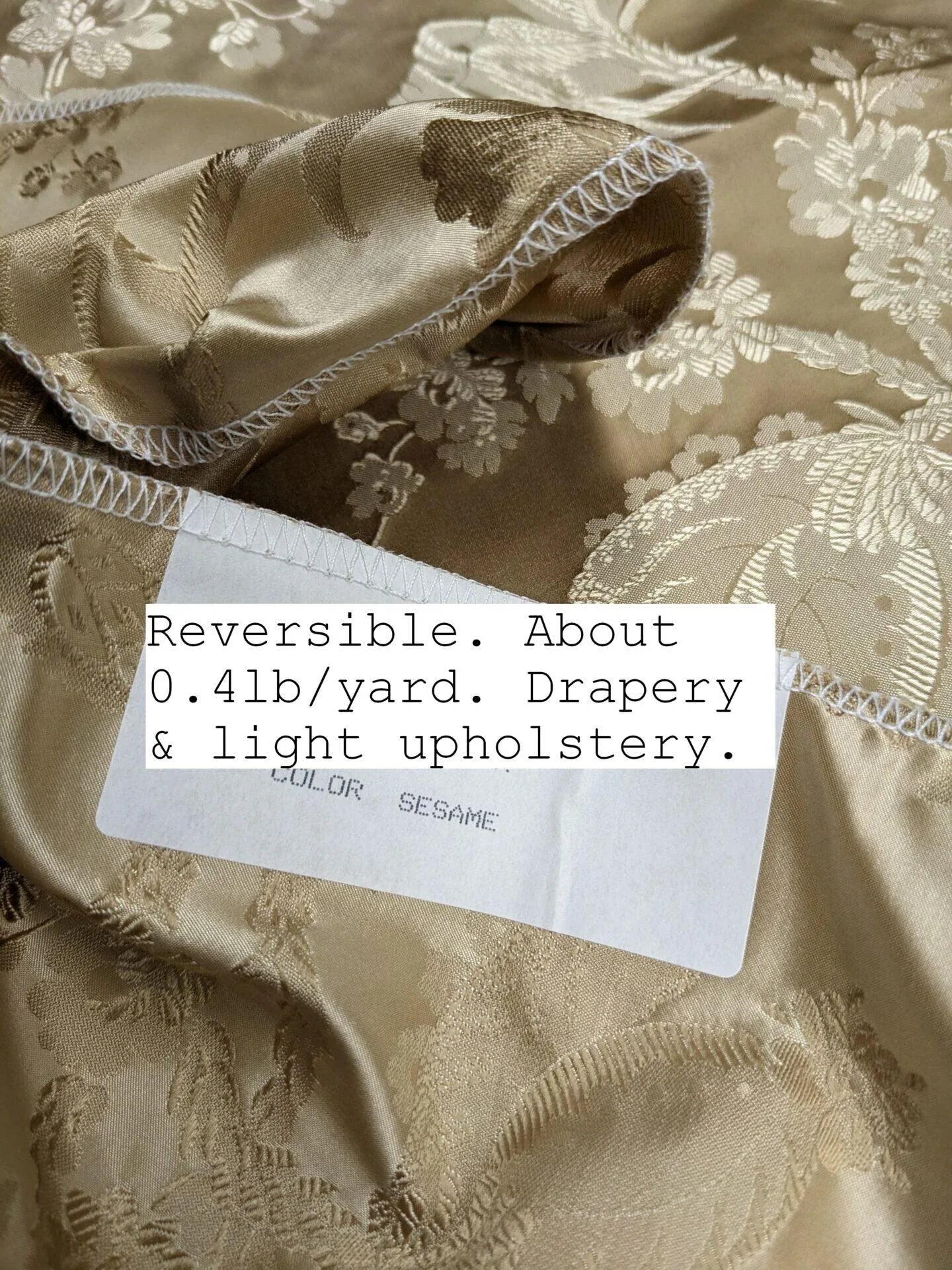 by yard 100% Silk Damask Lace Curvy Botanical Flower Vines Art Neuveu Sesame Gold