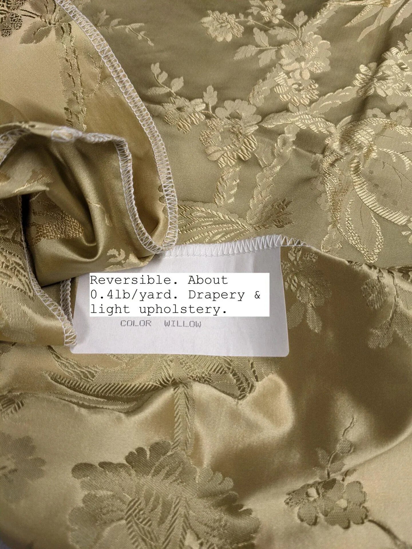 by yard 100% Silk Damask Lace Curvy Botanical Flower Vines Art Neuveu Willow Yellow Gold