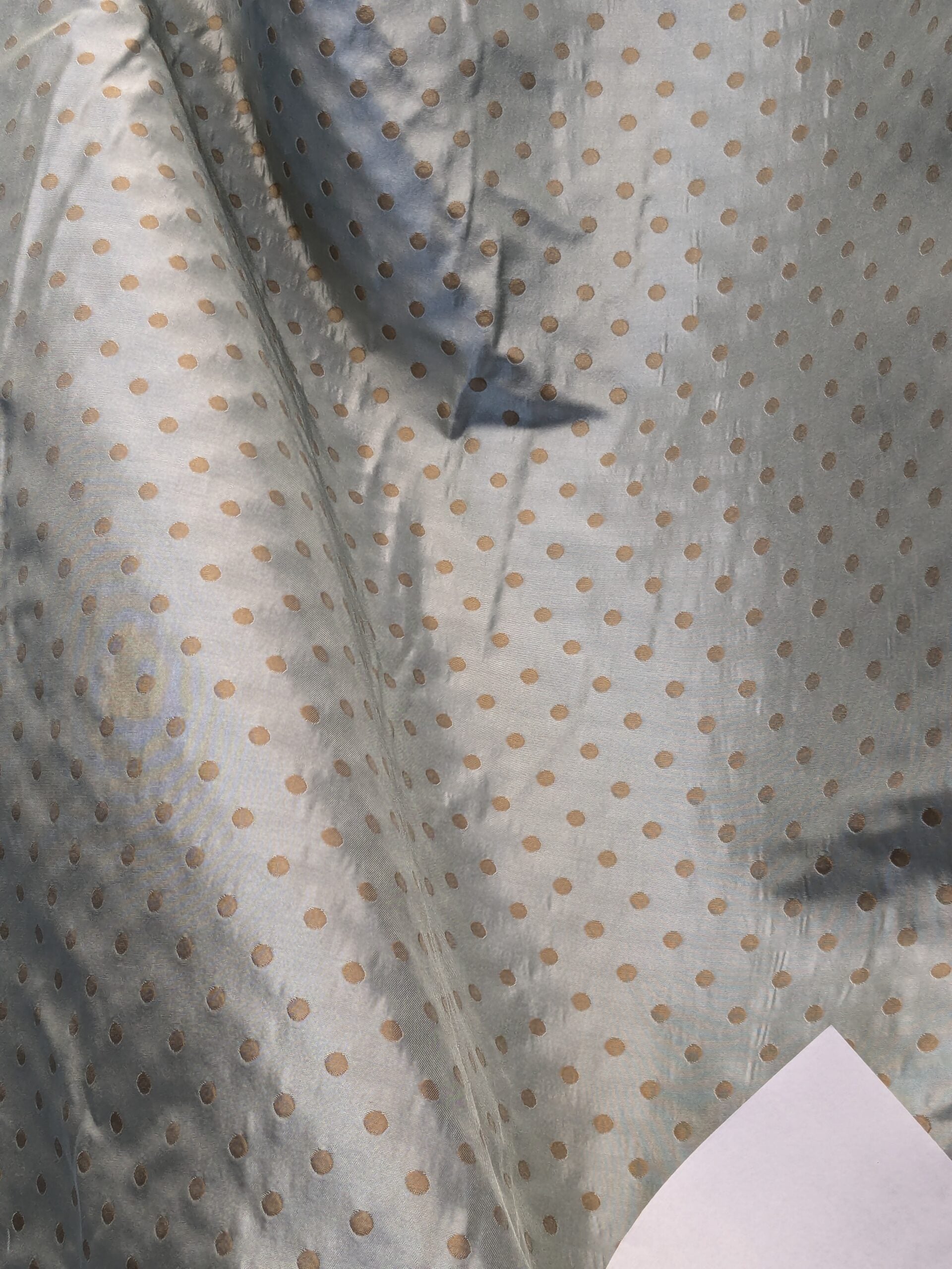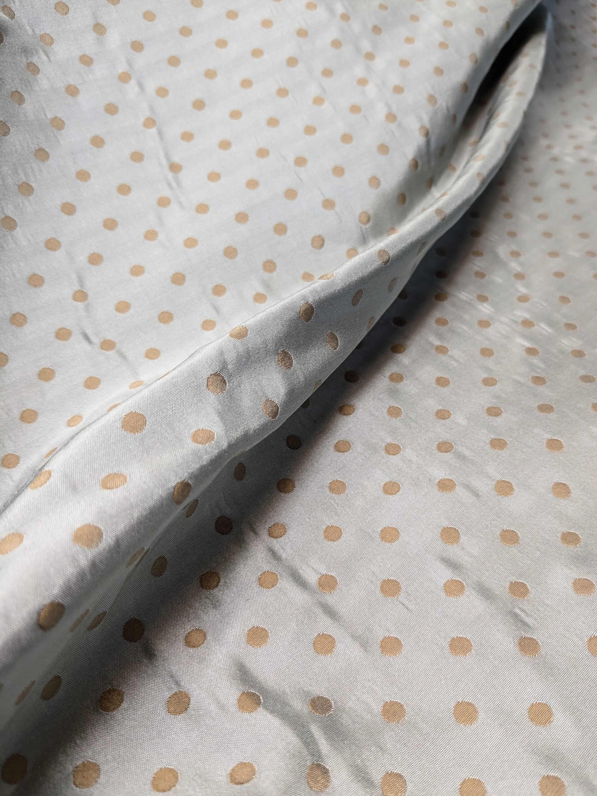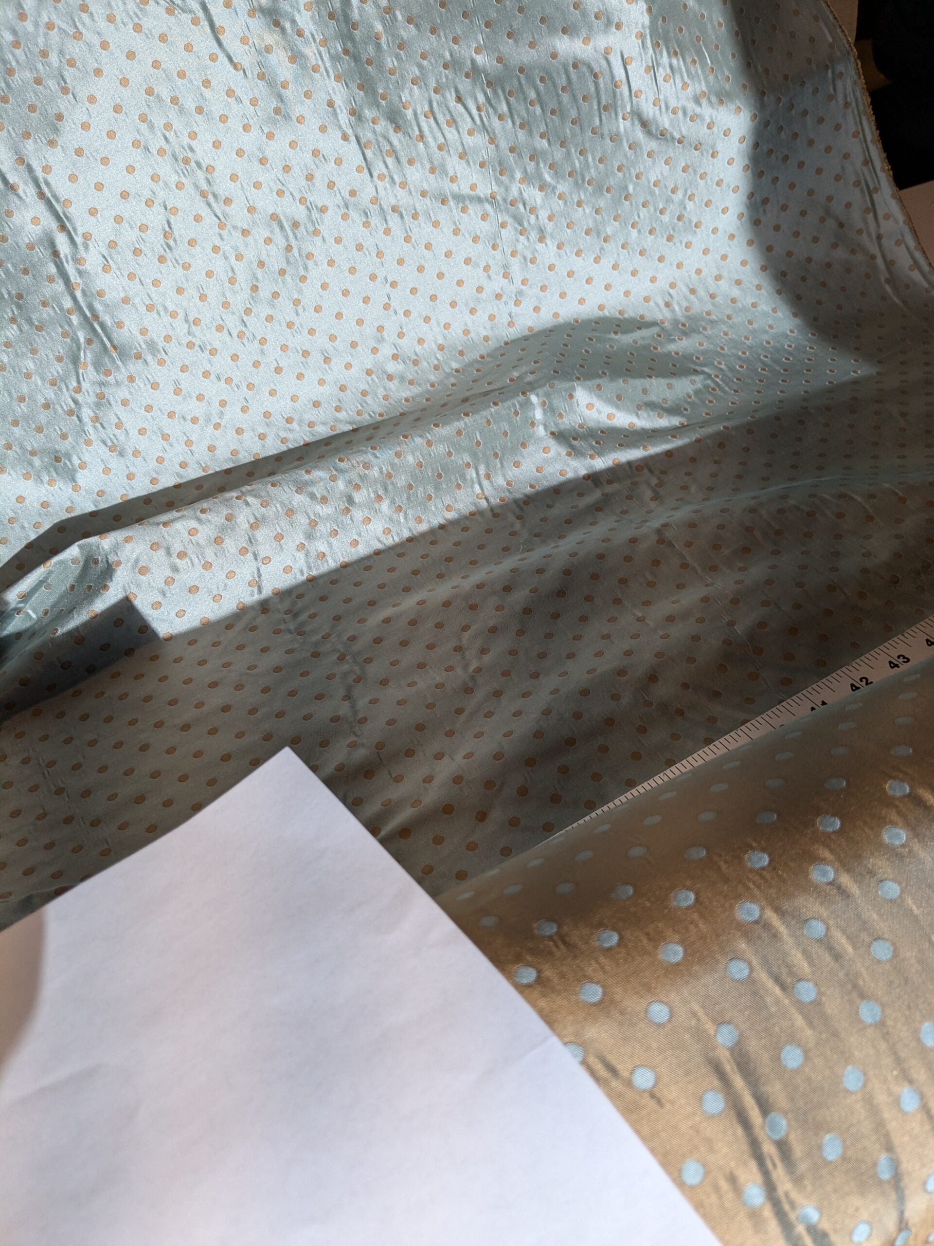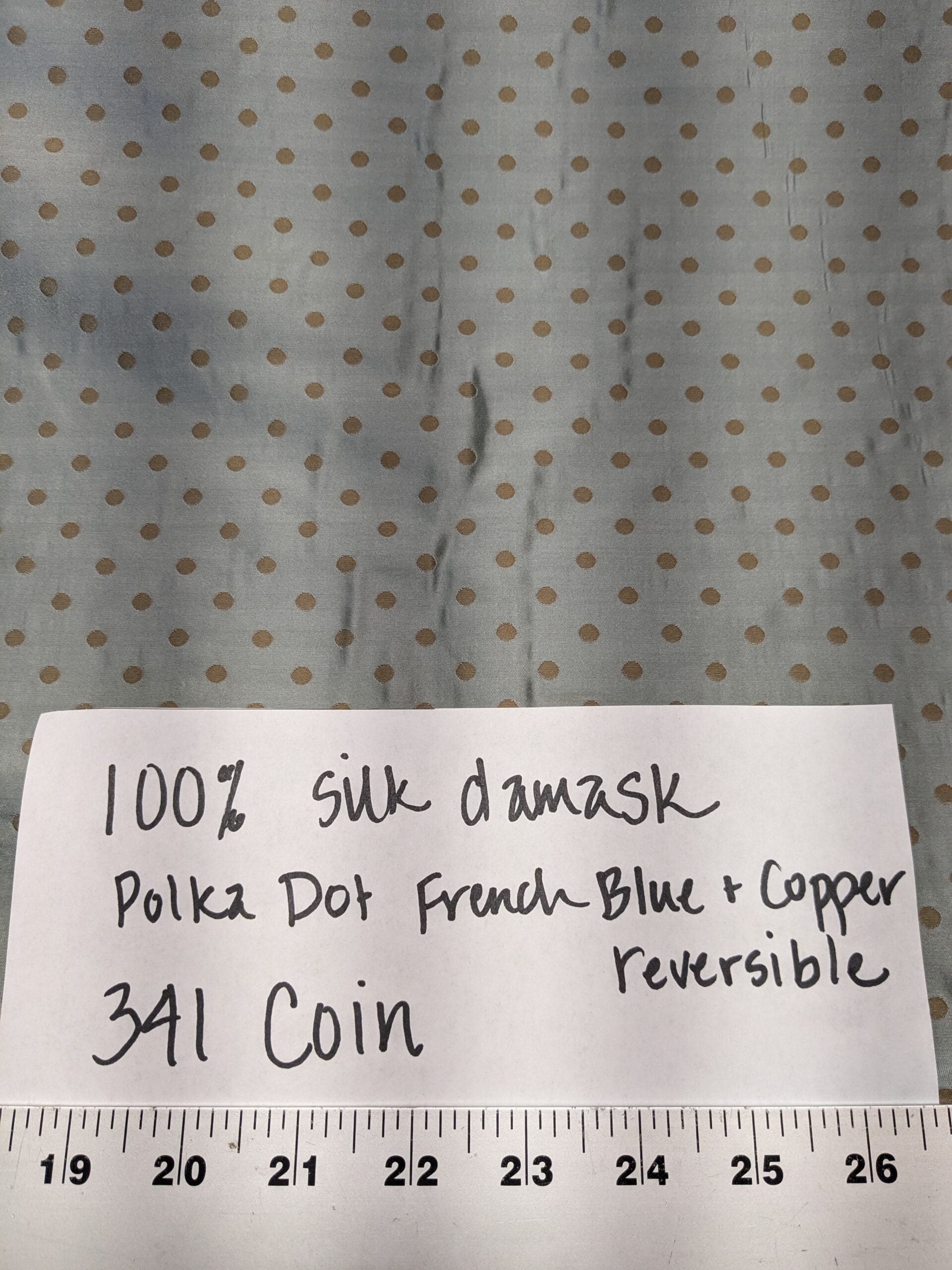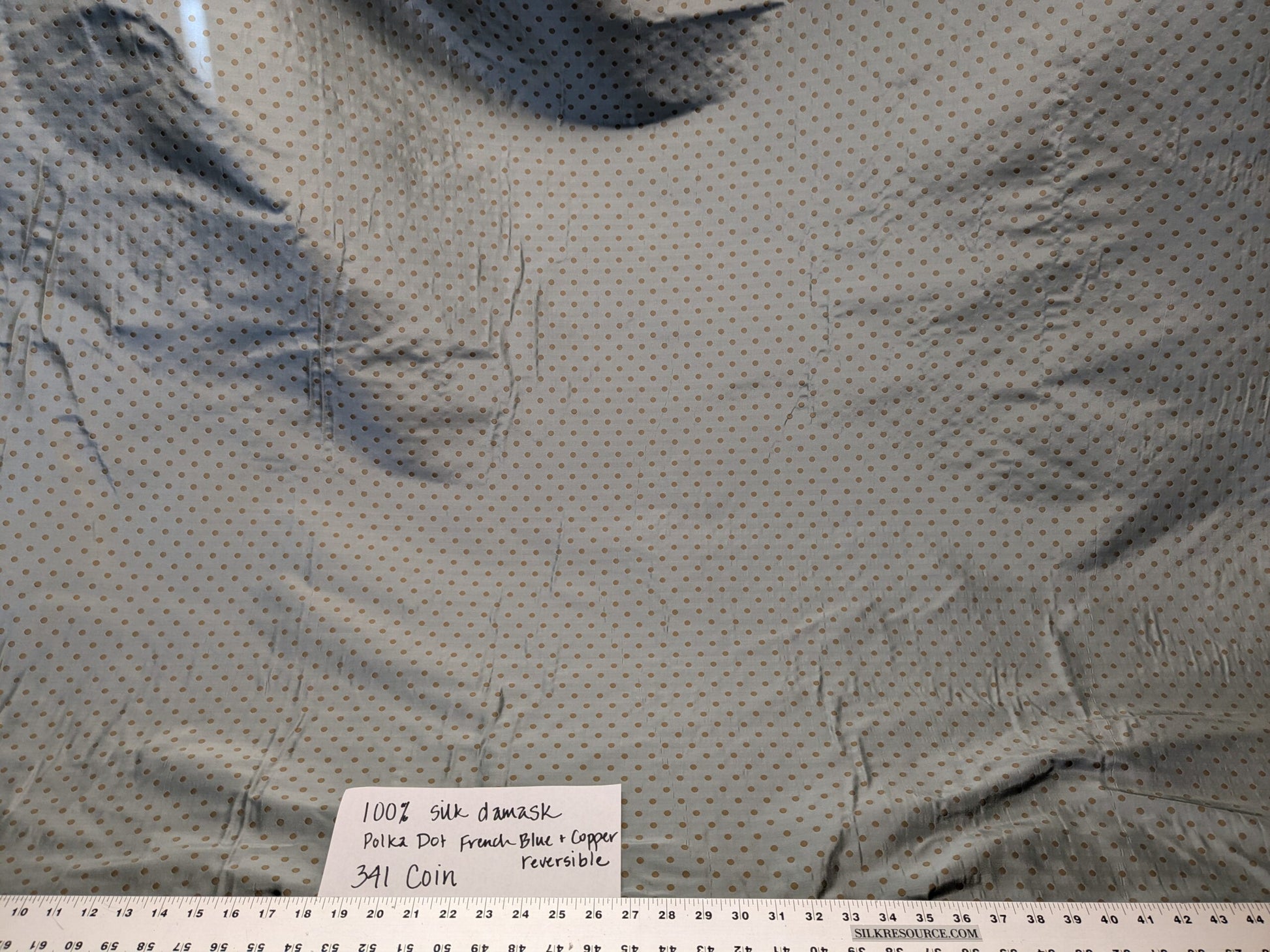 100% Silk Damask Jacquard Polka Dot "coin" French Blue Copper Gold Heavy Reversible