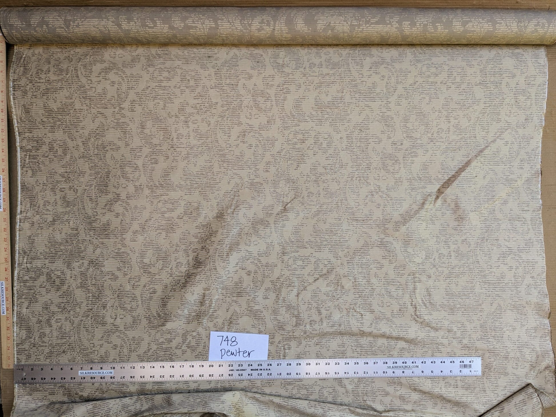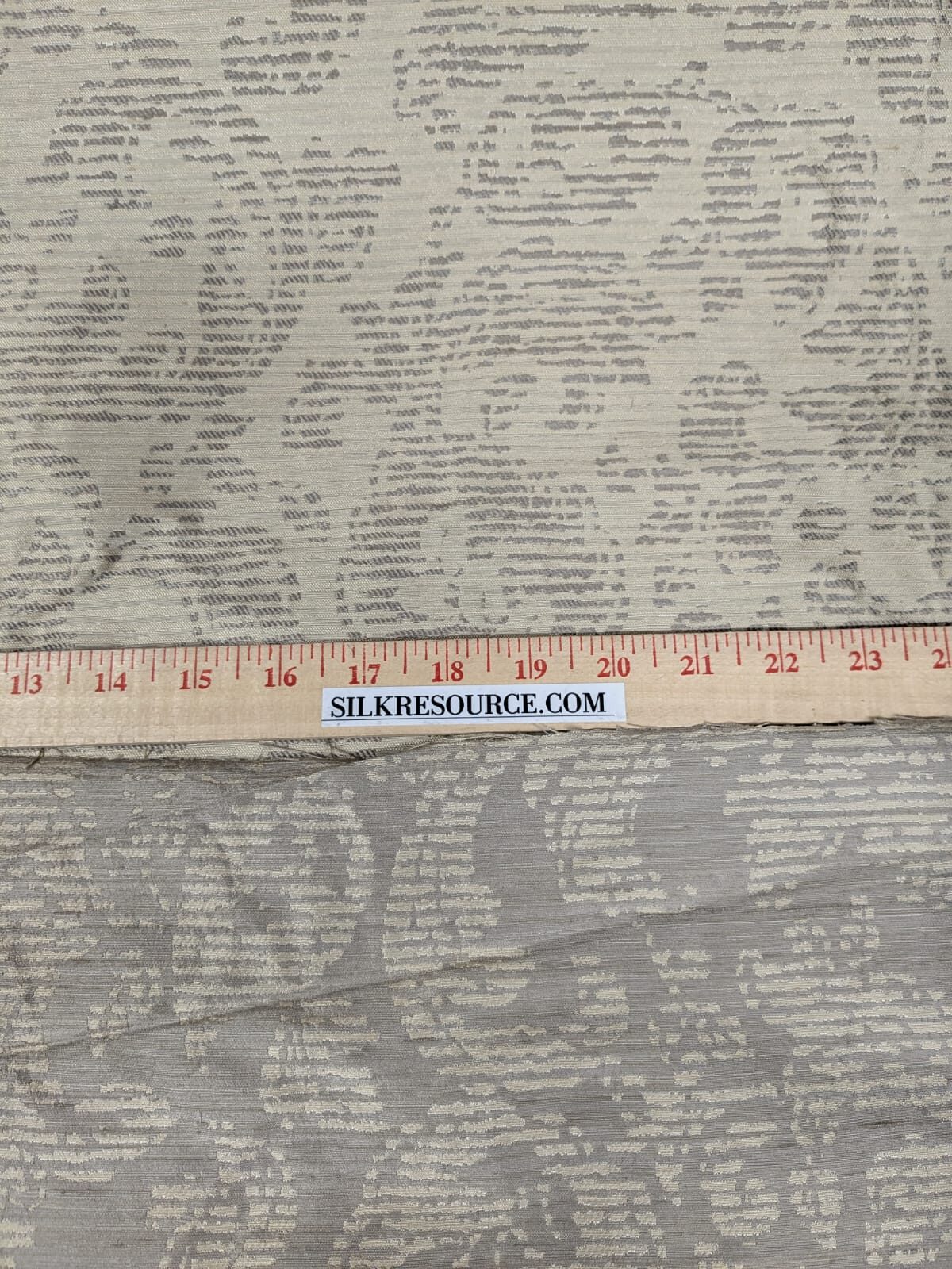 By Yard Filtered Sunray 100% Silk Damask Vine in Pin Stripe Paisley Pewter Tan Strie MSRP USD 275