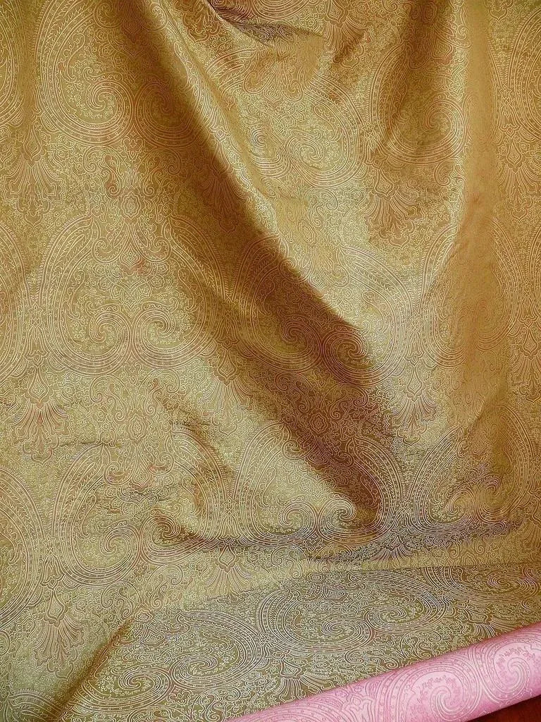 This silk lampas weighs about 0.5lb/yard which is about twice the weight of plain weave silk dupioni. The great substance and texture gives richness that only silk lampas can achieve.