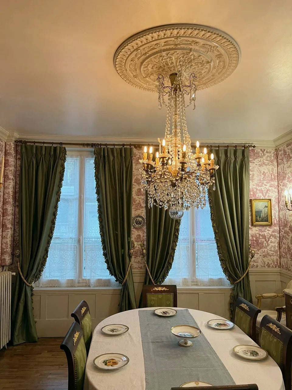 Last few photos are draperies made by our talented client in France, in “Empire” (blue, green, gold) Colorway.