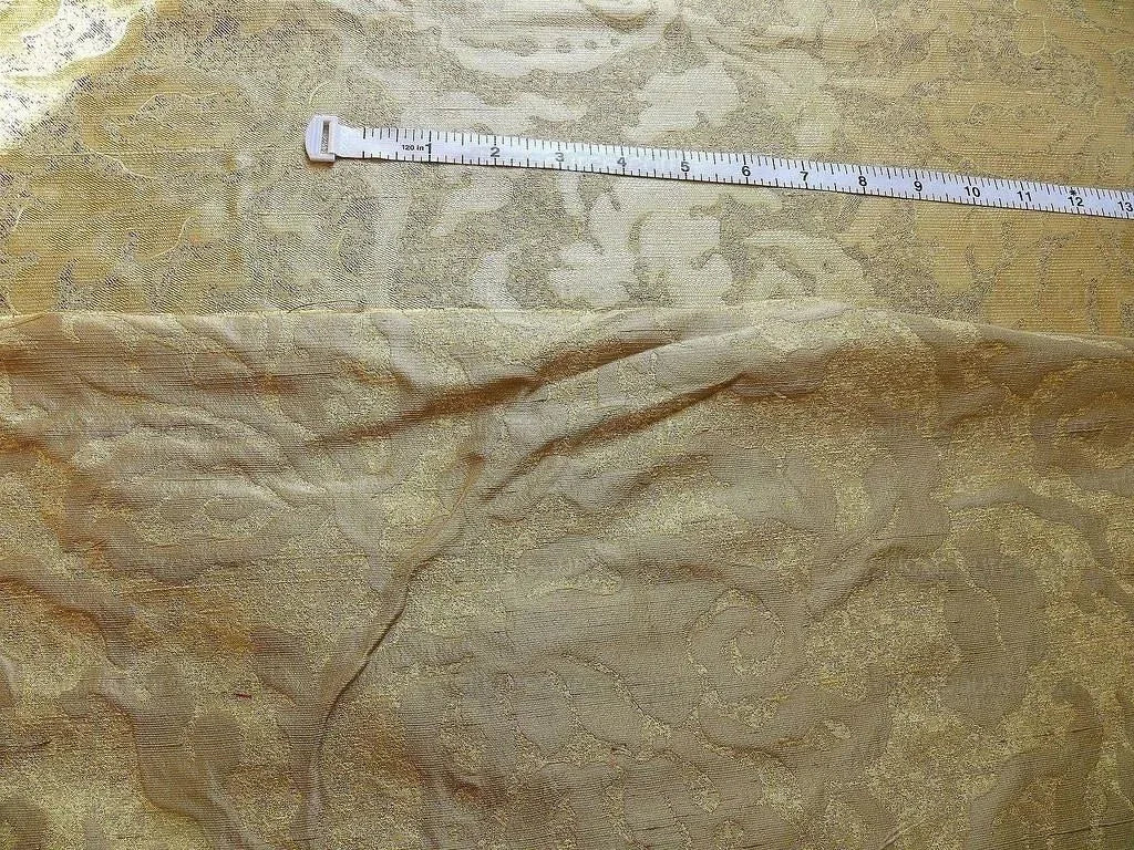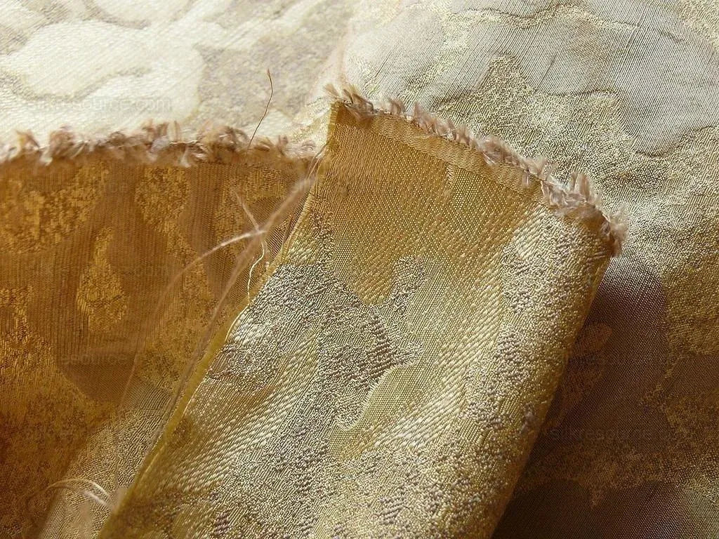 by yard 100% Silk Jacquard Papercut Pomegranate Flower "hemp" Khaki Mid Century Strie