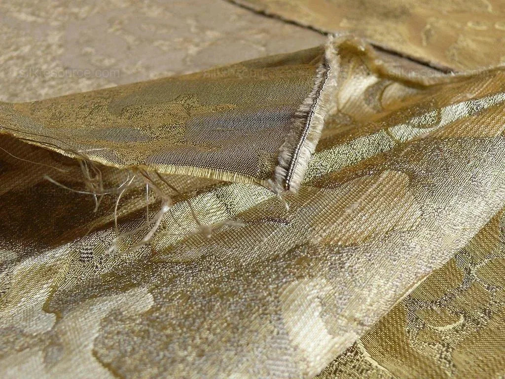 by yard 100% Silk Jacquard Papercut Pomegranate Flower "shimmer" Gold Mid Century Strie
