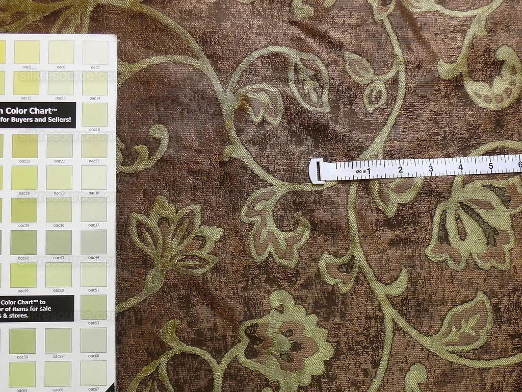 100% Silk Lampas Aged Metal Woven Flower "pear" Brown
