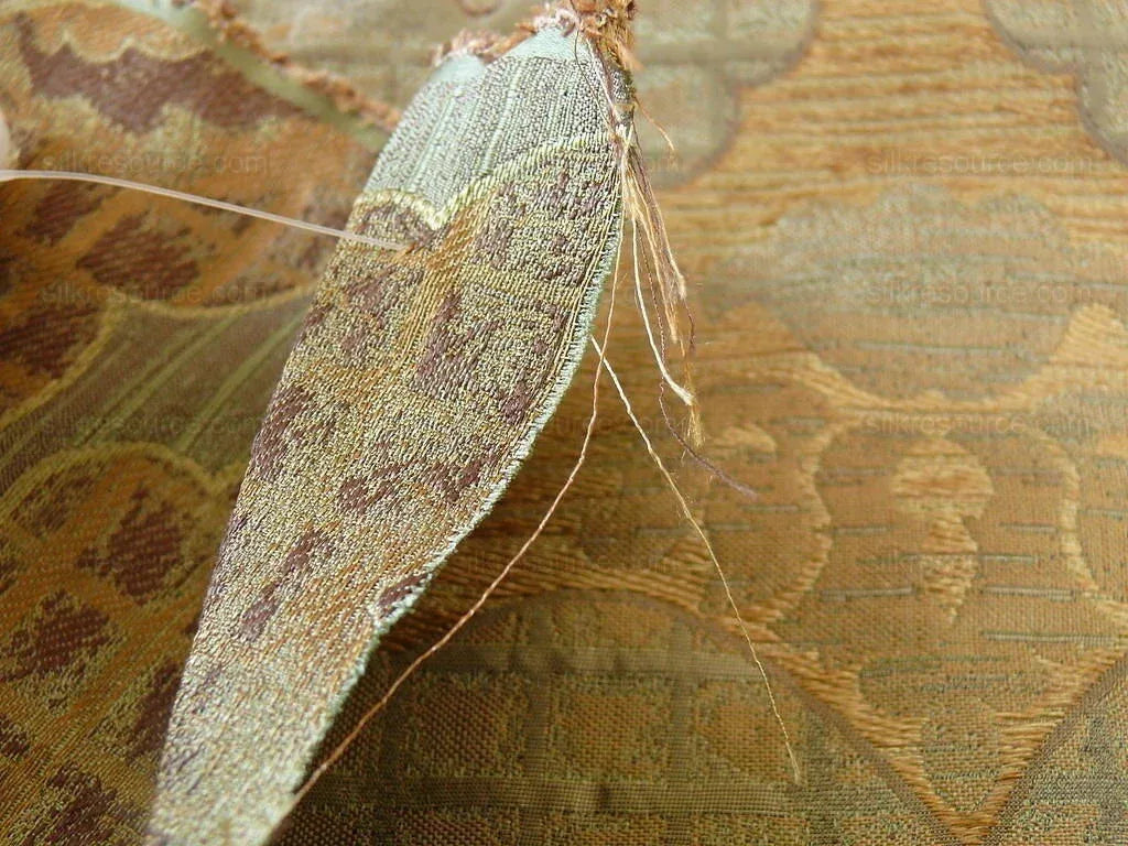 These silk lampas, incredibly, look like aged metal work. The patina and texture can fool your eyes from a distance but when your fingers touch the silky fiber, you will marvel the cretivity of the fiber artist!