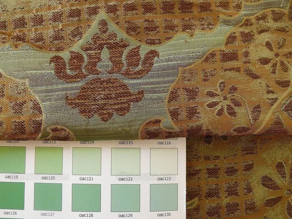 100% Silk Lampas Aged Metal Large Medallion "cognac" Brown Gold Green MSRP USD 328/yard