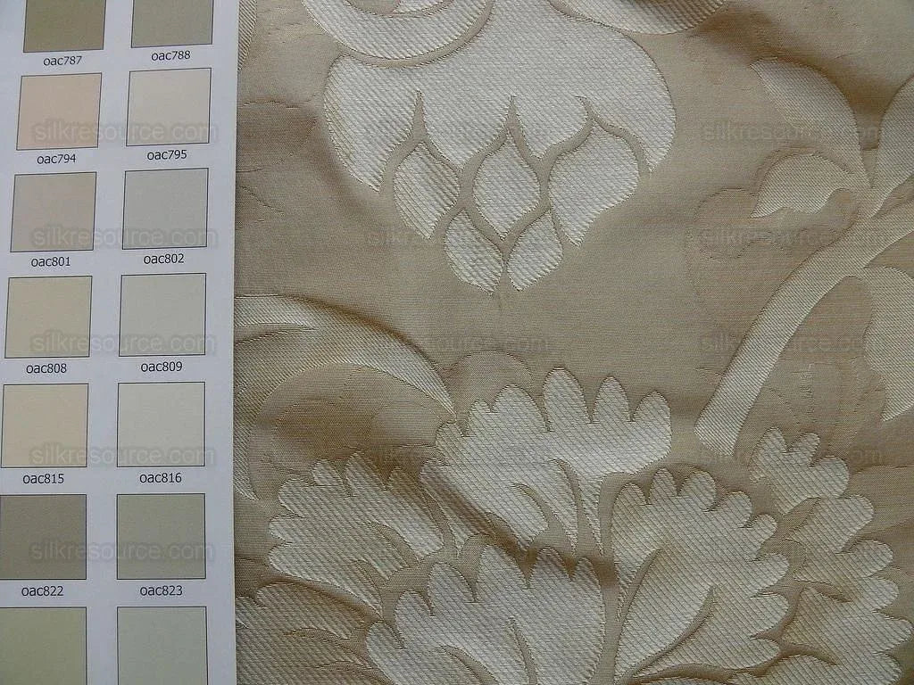 by yard 100% Silk Lampas Carnation Crewel "eggshell" Khaki Beige Reversible Layered