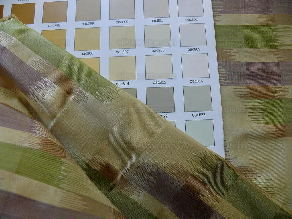 100% Silk Lampas Ikat Wave Chevron "lilac" Purple Green Gold Cream Khaki MSRP USD 268