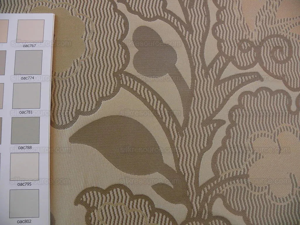 100% Silk Lampas Large Art Deco Flower Vine "tawny" Tan