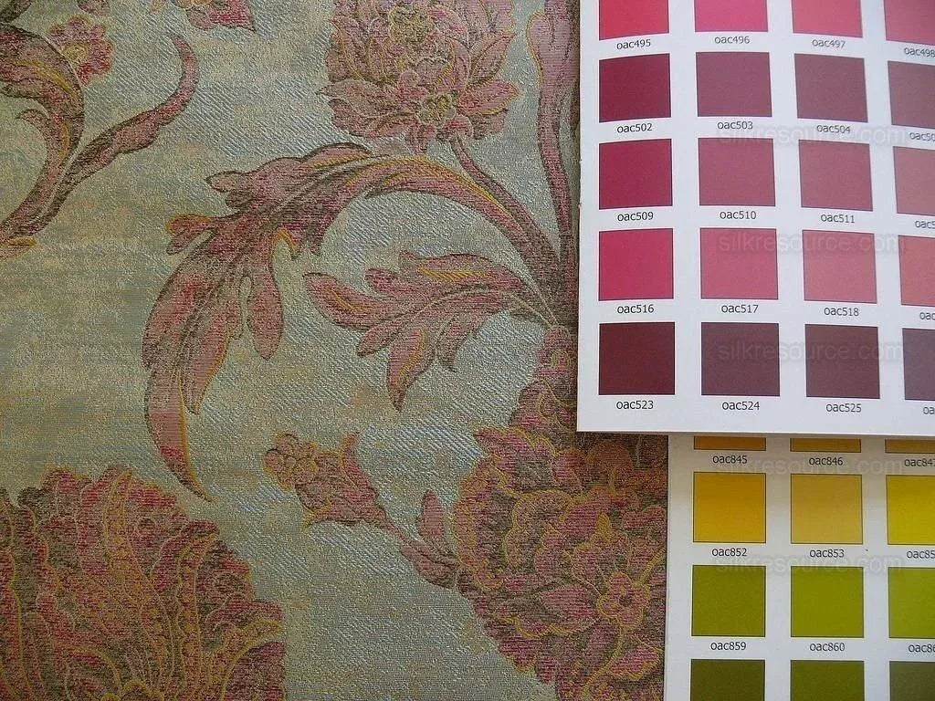 100% Silk Lampas Large Peony Paisley "etruscan" Blue