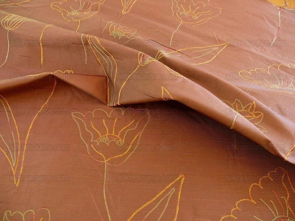 100% Silk Lampas Tulip "brick" Red Mod Picasso Modern Abstract Flora Thick MSRP USD 300+/Y