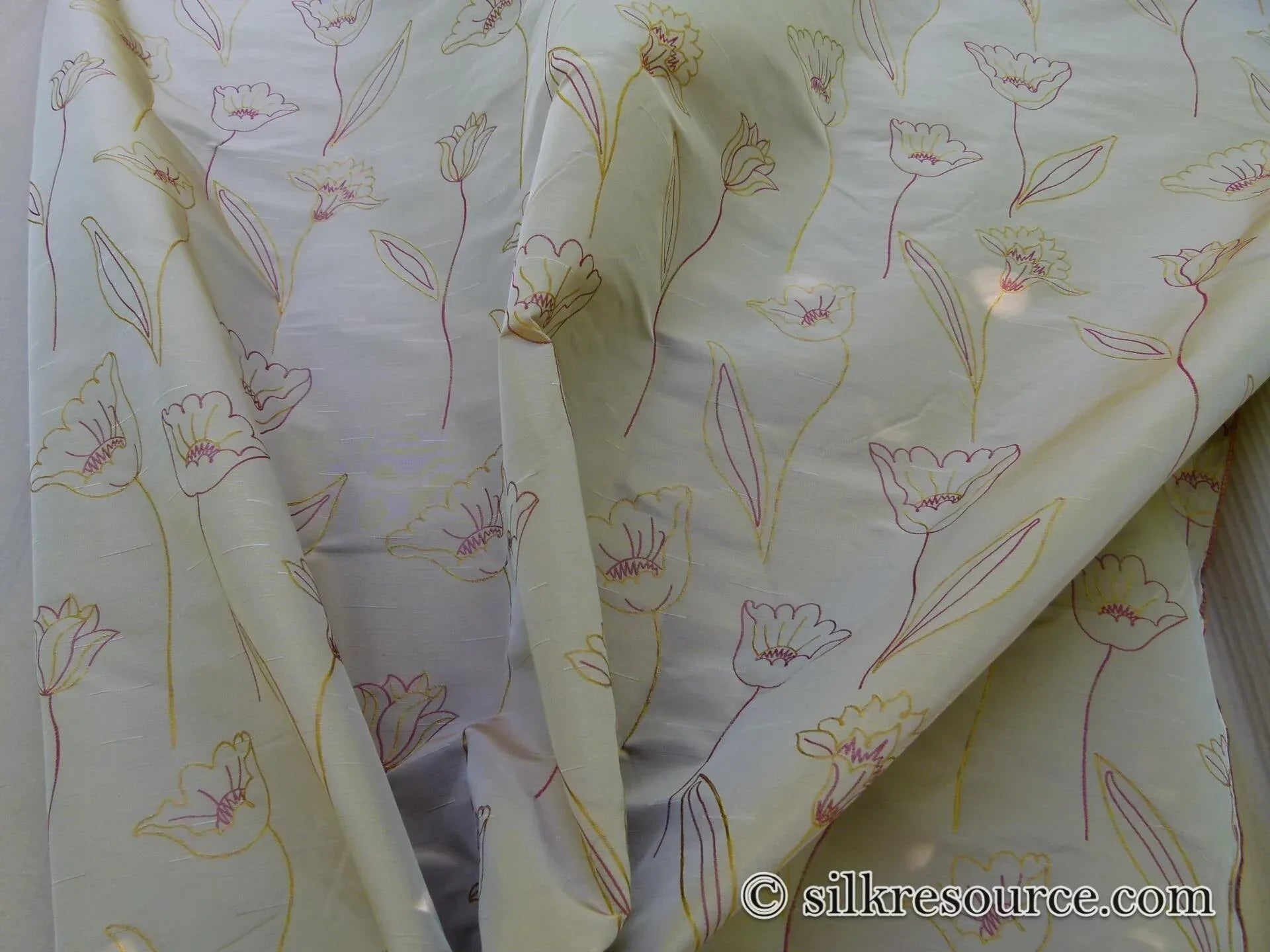 100% Silk Lampas Tulip "Gold" Antique Gold Mod Picasso Modern Abstract Flora Thick MSRP USD 300+/Y