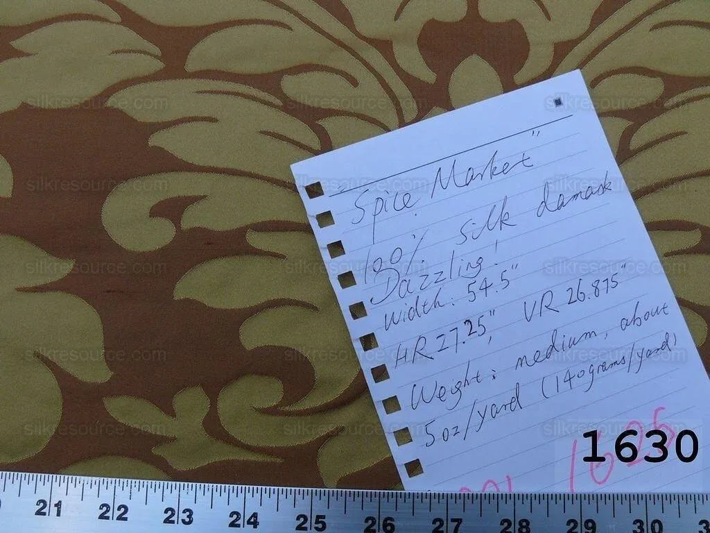100% Silk Spice Market Orange Pumpkin Gold Grand Damask #1630