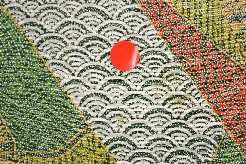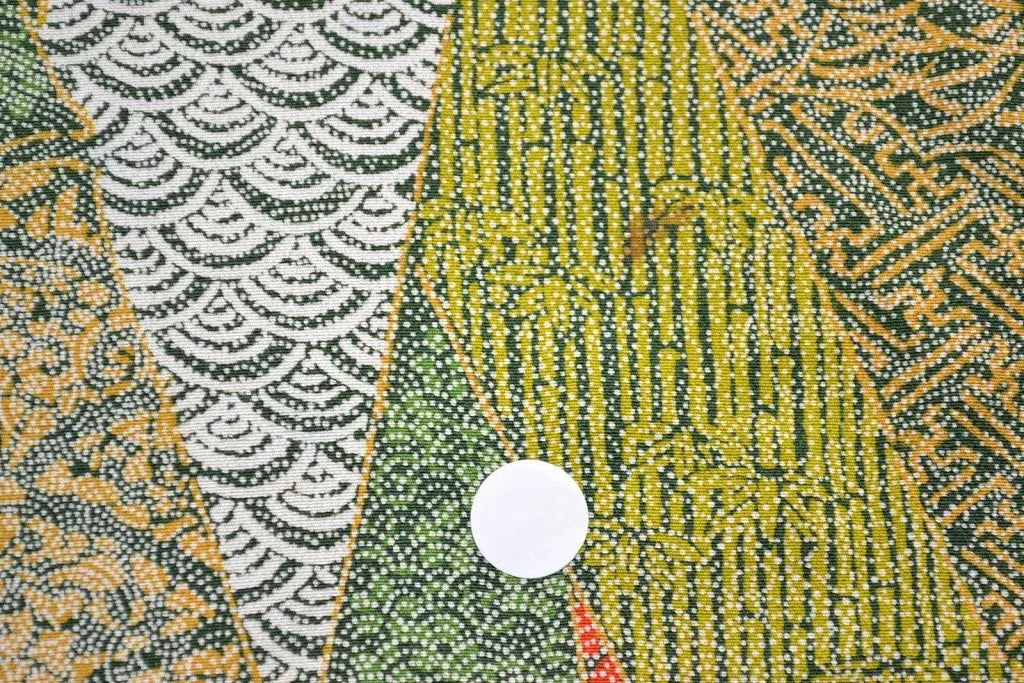 100% Silk Wedding Kimono Unique Abstract Tsunami Wave Green Eathy Red