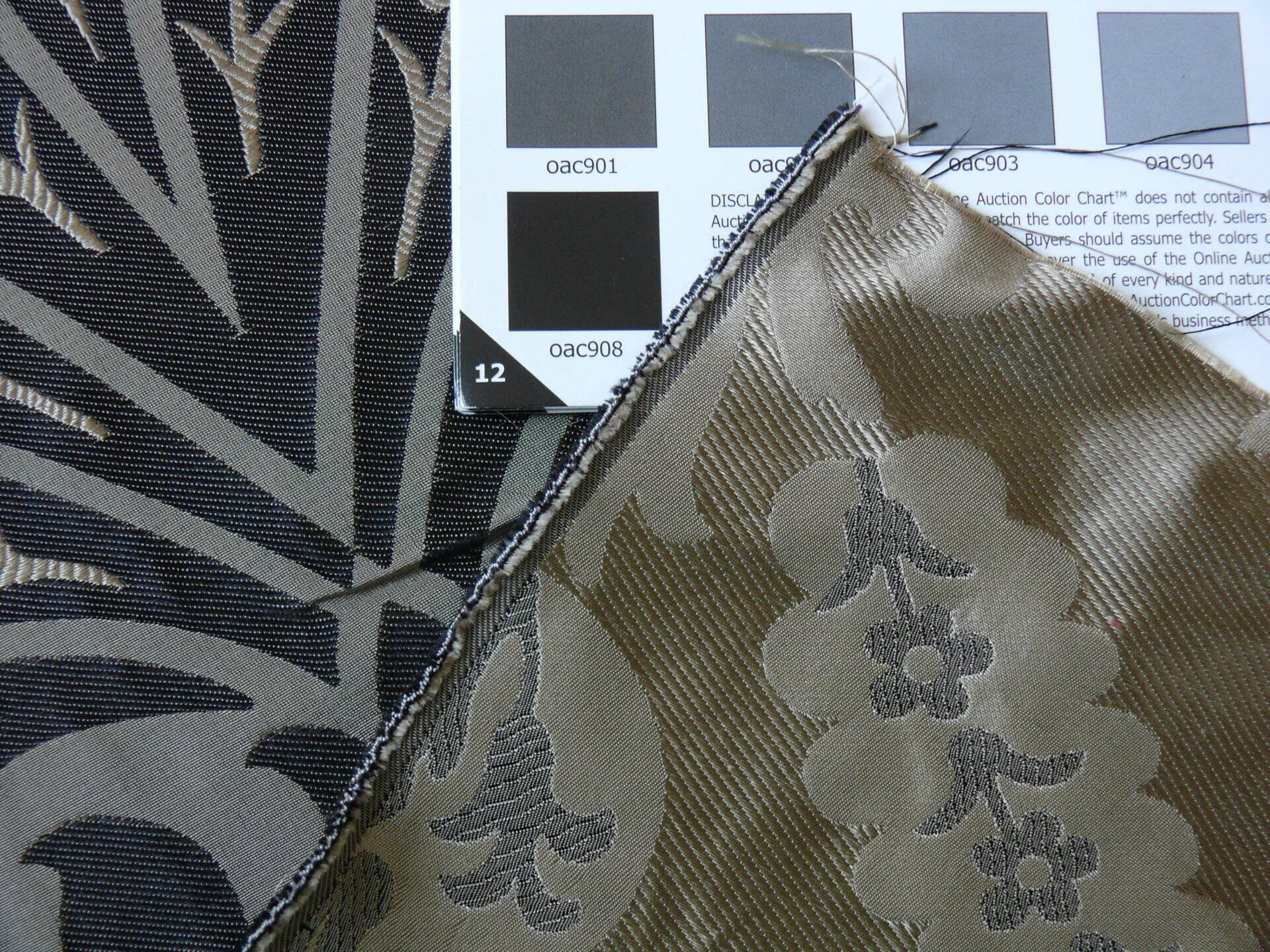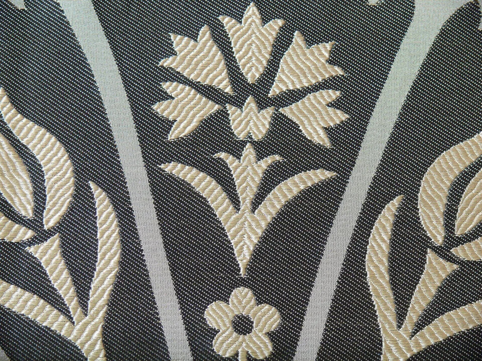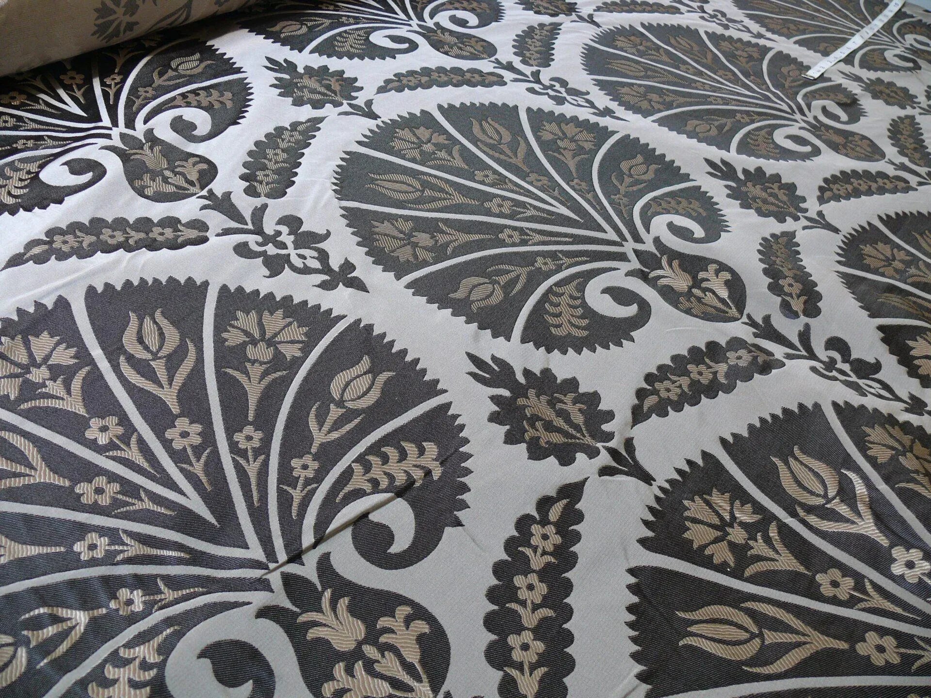 100%silk Lampas Tulip Fan Damask 536 "smoke" Black Charcoal Silver Gold Bty MSRP USD296/y!