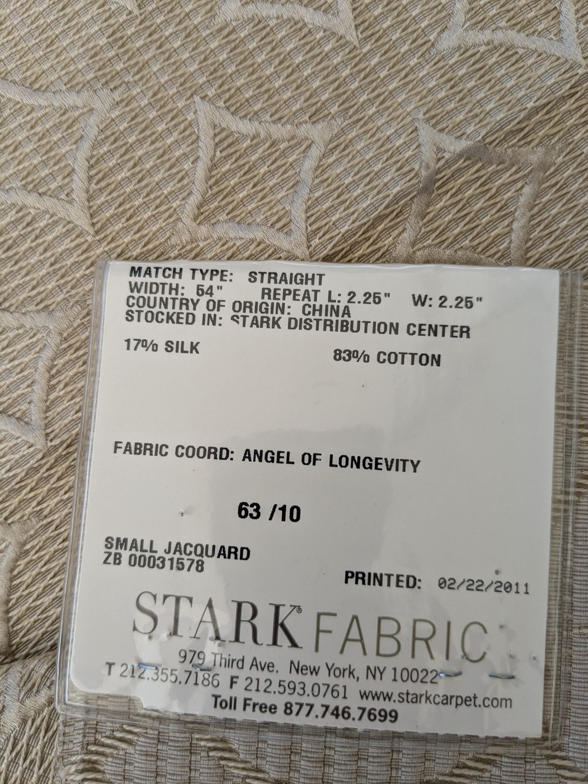 Fiber, repeat, width, weight, country of origin, WHOLESALE price/yard: