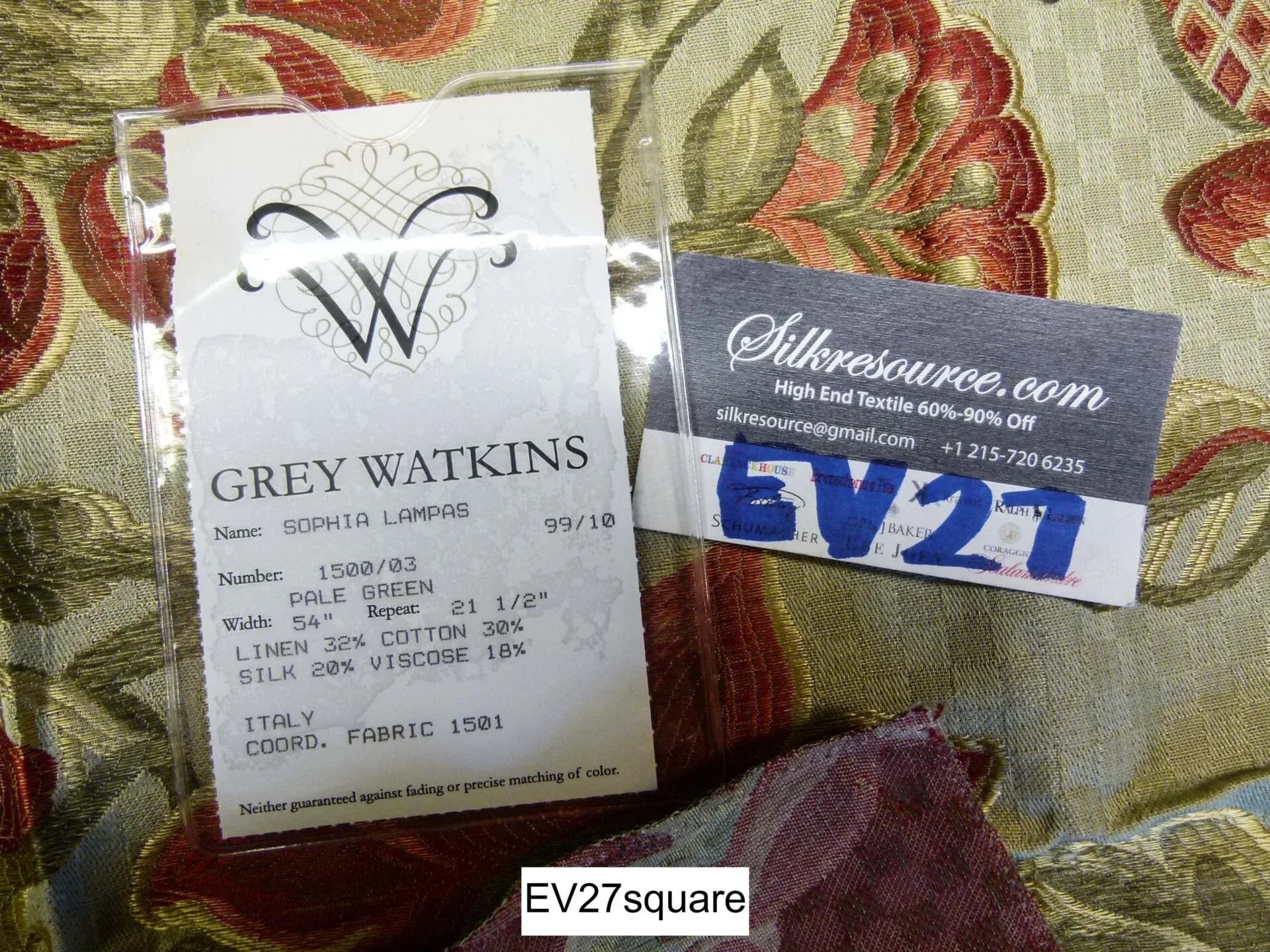 Scalamandre Grey Watkins Sophia Lampas Pale Green Botanical Tree Foliage Silk Lampas - Square 34"x36"