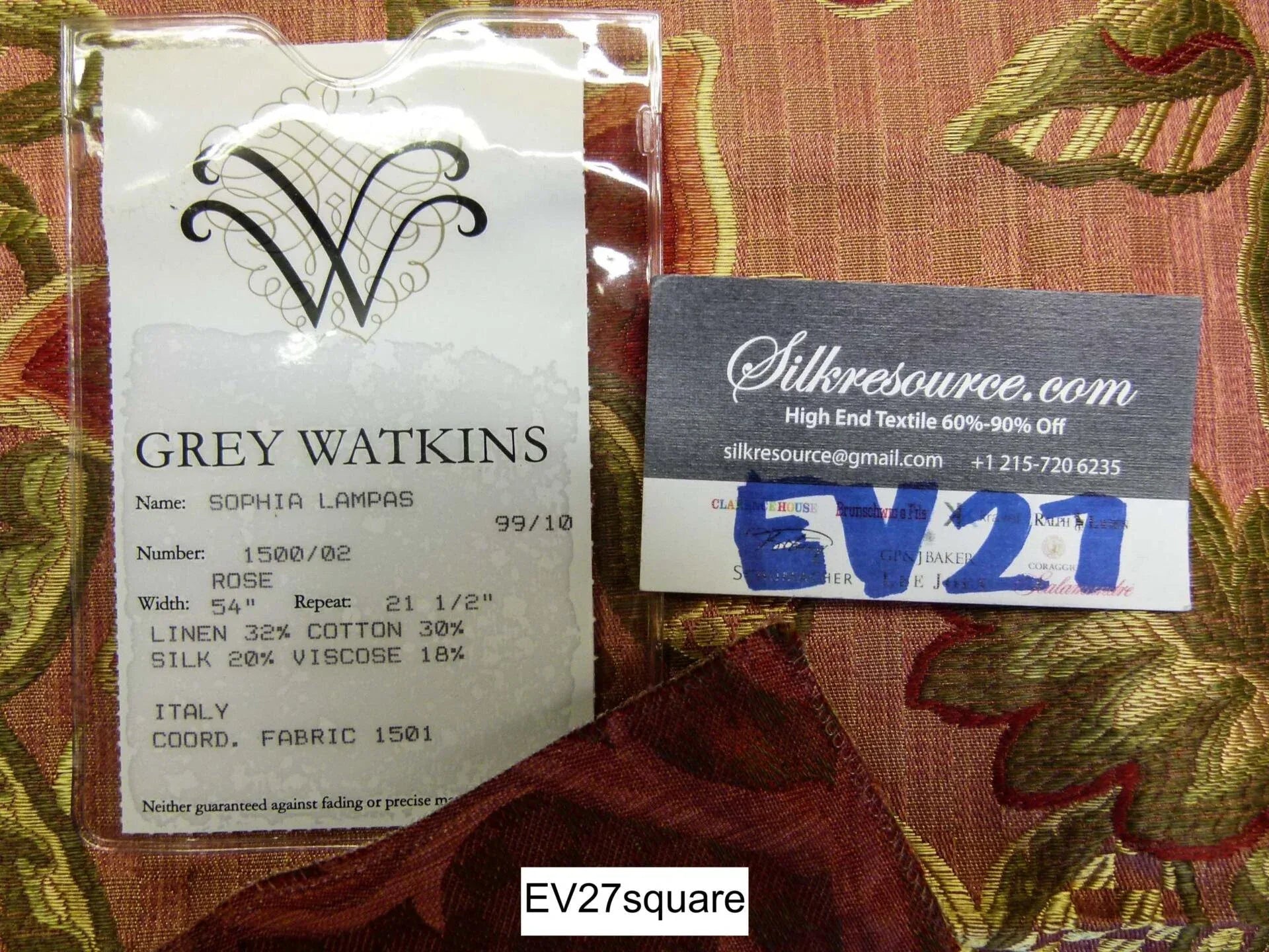 Scalamandre Grey Watkins Sophia Lampas Rose Botanical Tree Foliage Silk Lampas - Square 34"x36"