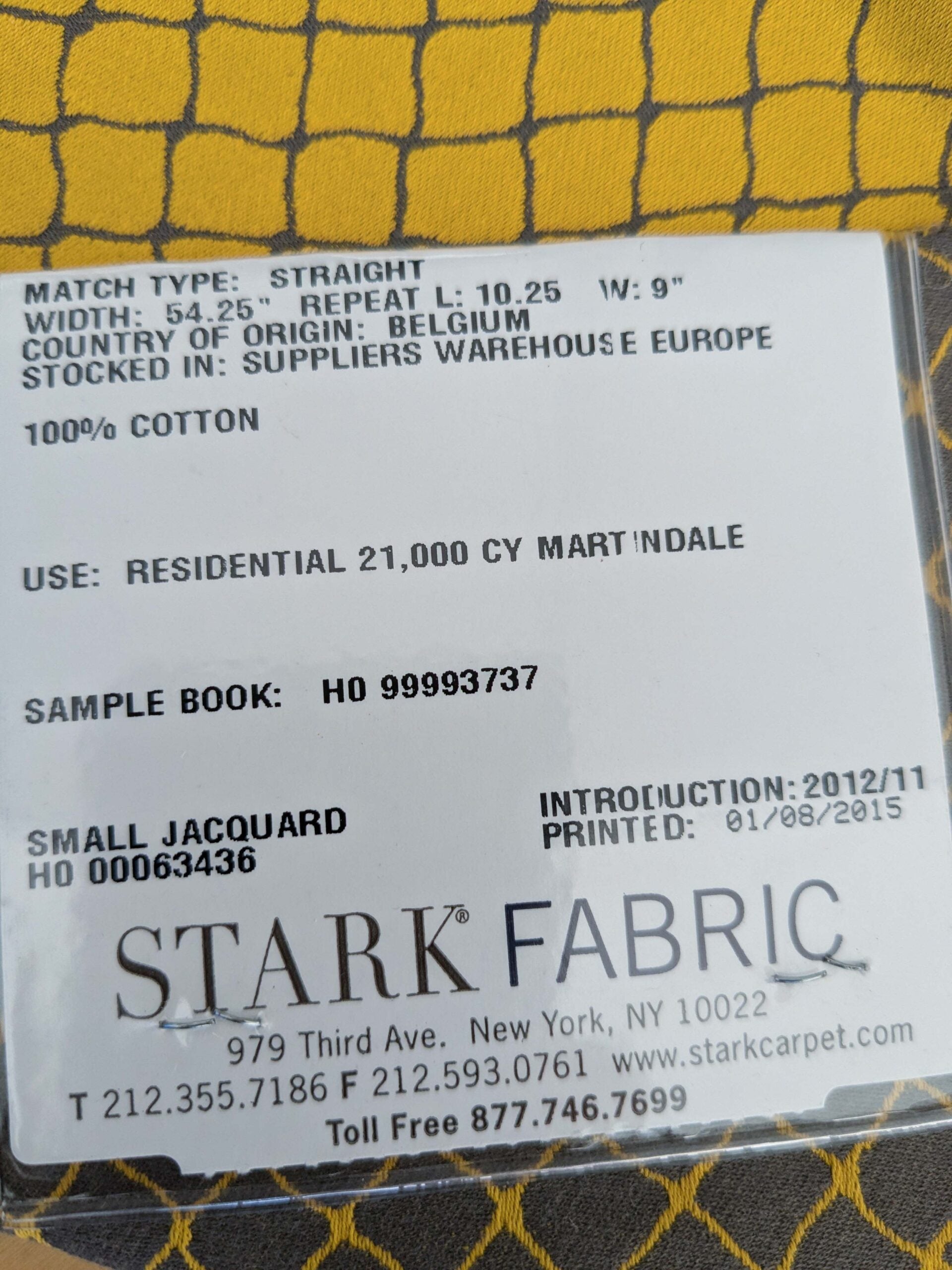 Fiber, repeat, width, weight, country of origin, WHOLESALE price/yard: