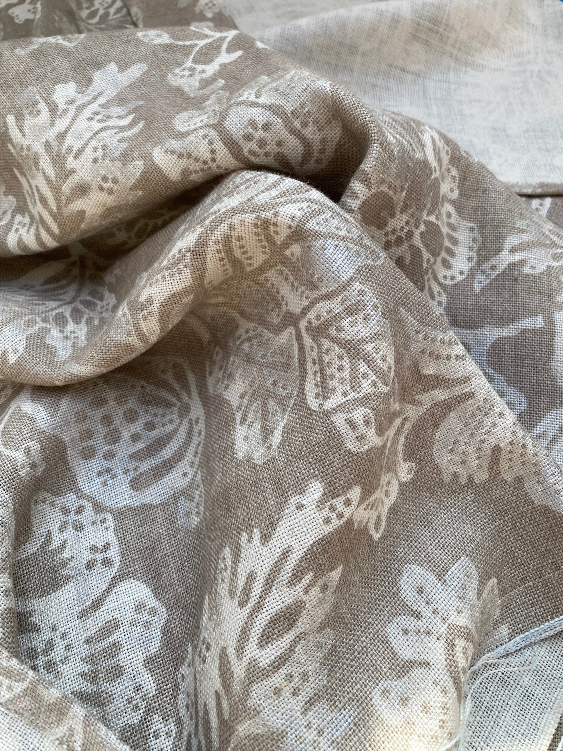 11 BerkBox95 Printed Fabrics by Scalamandre Calais Linen Print Flax Beige Floral MSRP 300+/y