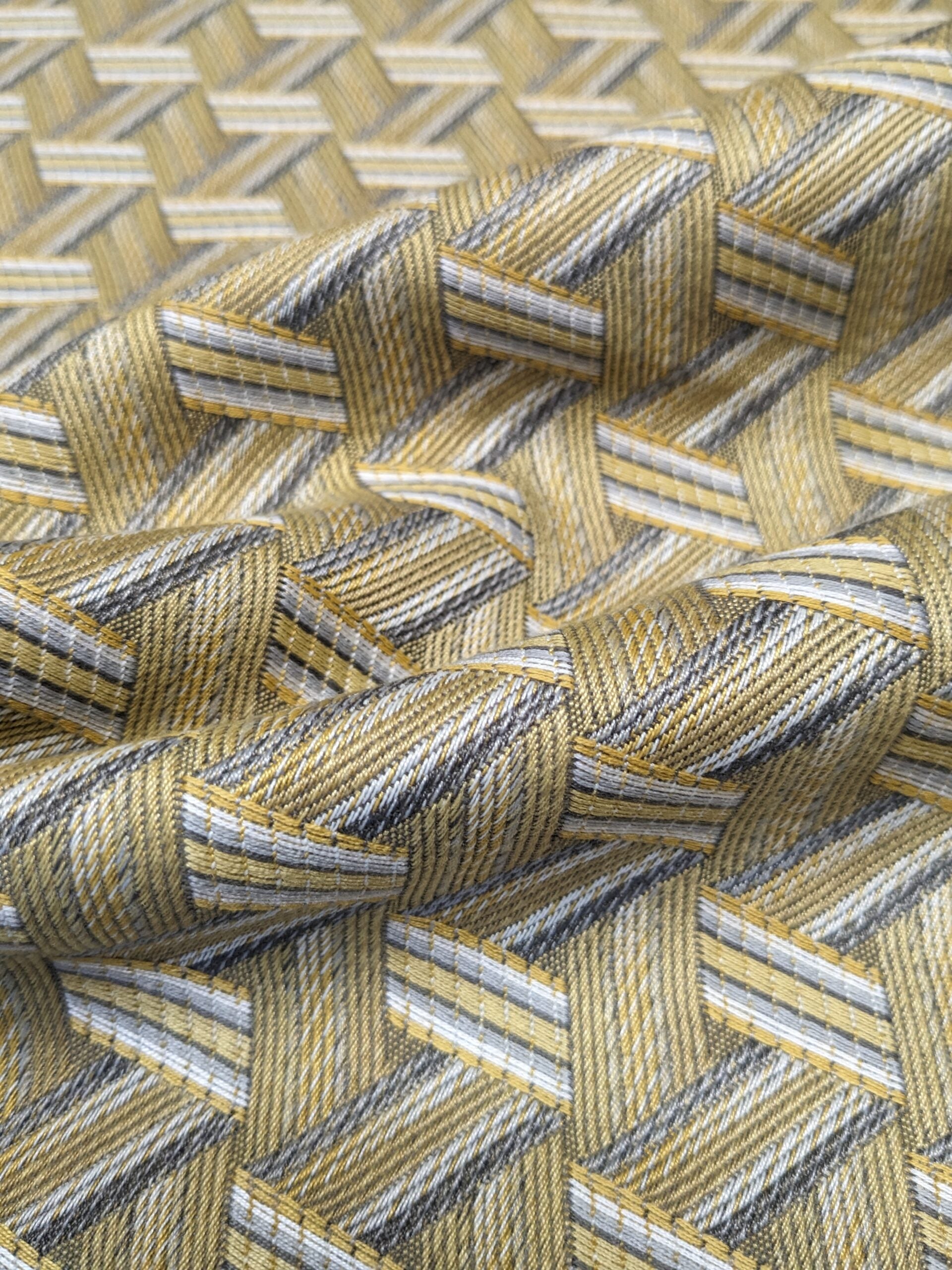 11 EV34 Special Square Jacquard by Lelievre Paris Tribu Paille Large Jacquard Yellow Gray Polyester Geometric Graphic MSRP USD576/y