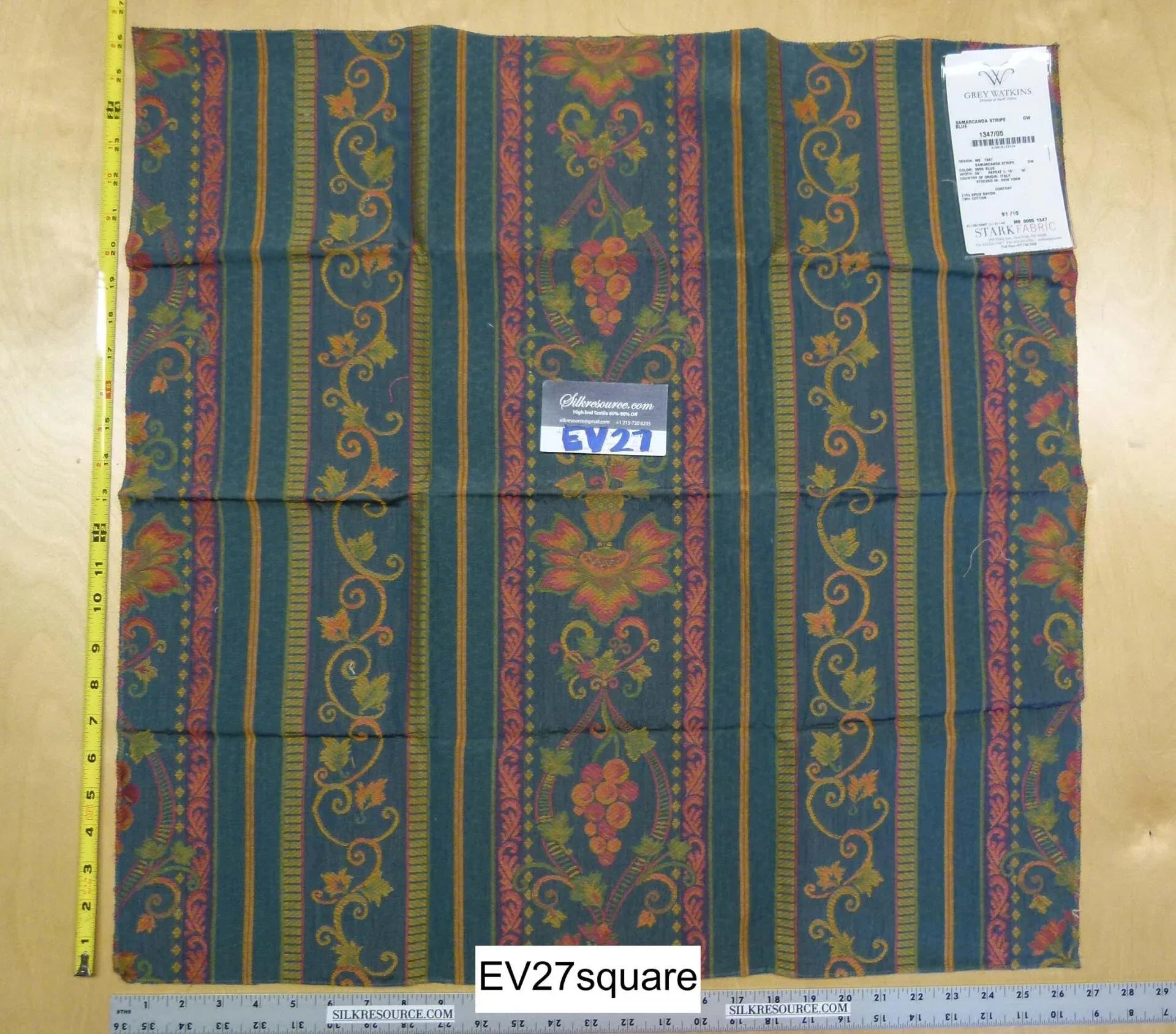 Scalamandre Grey Watkins Samarcanda Stripe Blue Botanical Scroll - Square 26 inches x 27 inches