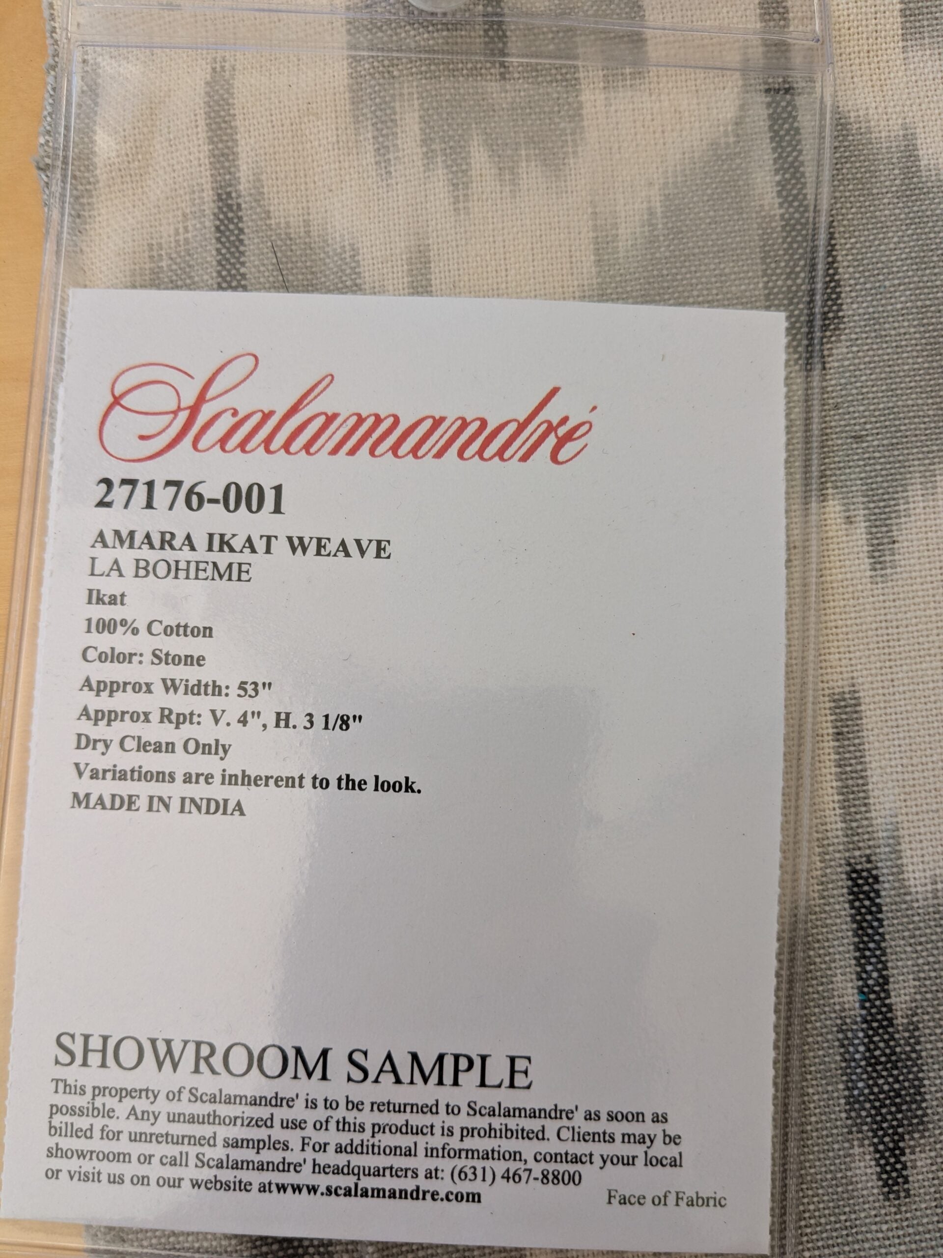 119 EV47 Square Scalamandre Amara Ikat Weave Stone Gray Cotton Hand Woven MSRP USD 150/Y