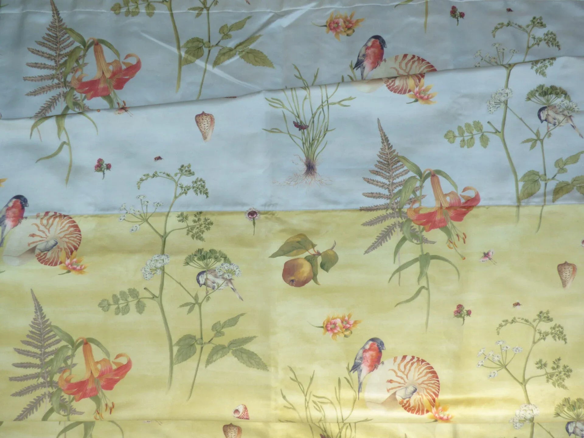 12 Berkbox50 Scalamandre Square Bullfinch & Nautilus Multi On Blue Haze White Yellow Print 1.2+1.2 Yd MSRP USD 456/yard